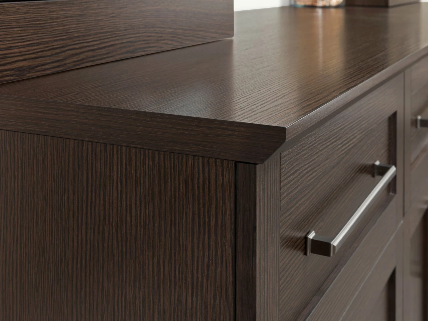 Enjoy more workspace for everyday tasks, storing appliance and entertaining with a Home Bar Series 21 in. Countertop. Constructed with a solid plywood core, its designed to fit seamlessly over our Home Bar Series 21 in. floor cabinet. Beveled edges add contemporary styling to this durable countertop that accents the shaker-style cabinets perfectly. The melamine countertop has a subtle wood-grain texture to brighten up any room. A stain-resistant, melamine finish stands up to spills and resists scratching spills, making it easy-to-clean and up to the challenge of everyday use. Add function and style to your cabinets with the Home Bar Series 21 in. Countertop.