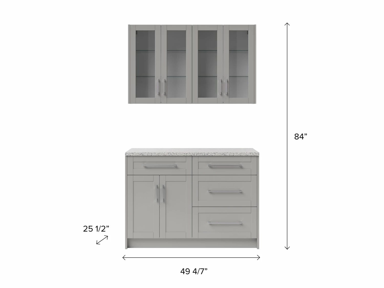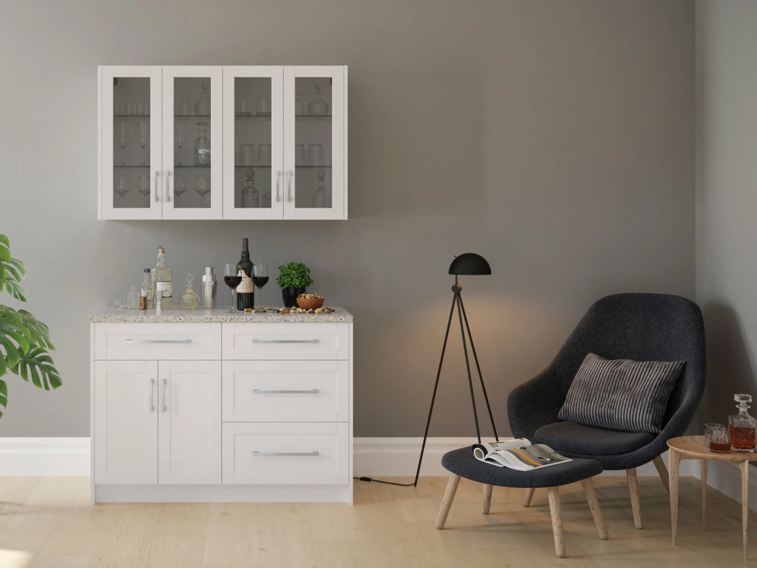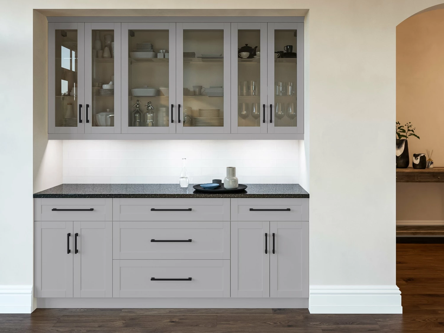Entertain in style with our fully-assembled home cabinet sets. These versatile units are ideal as a home bar, dining room serving area, media room snack station or anywhere you need convenient storage in a sleek, space-saving profile. It’s the perfect place to keep serving sets, place mats, tablecloths and decorations along with glassware and other entertaining essentials. Full-extension drawers feature premium, soft-close hinges. Thick 18mm frame construction delivers outstanding durability beneath an easy-clean surface. Available in your choice of White or Gray matte finishes to complement any décor. Cabinet organizers and accessories sold separately.