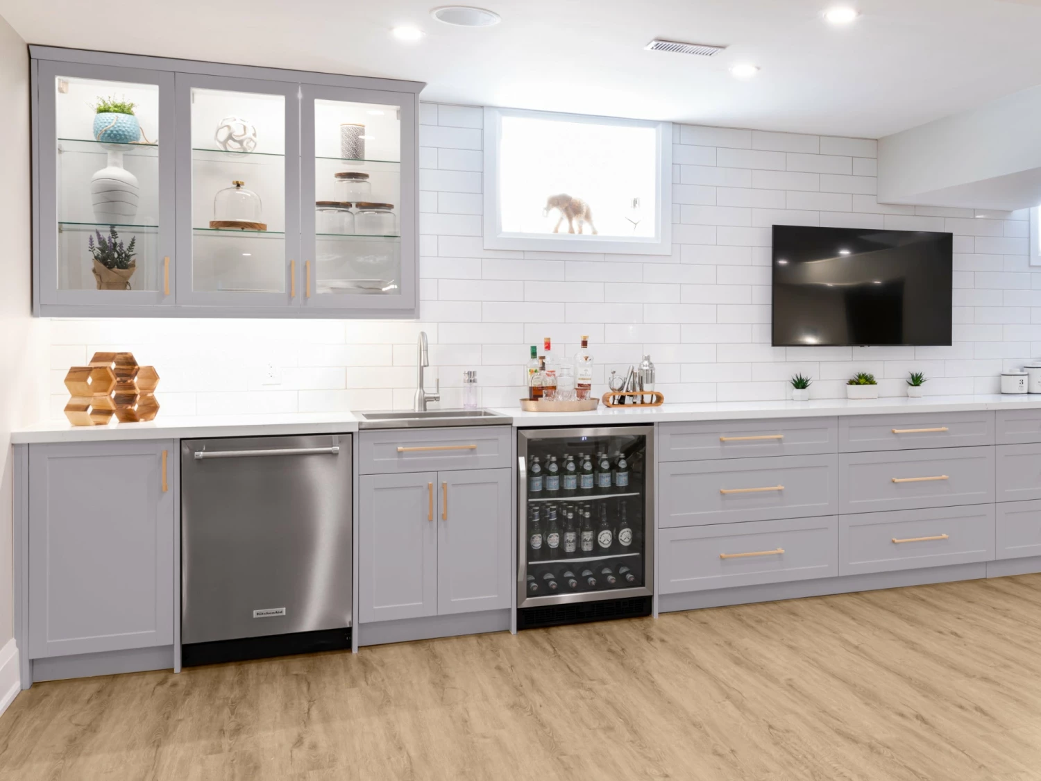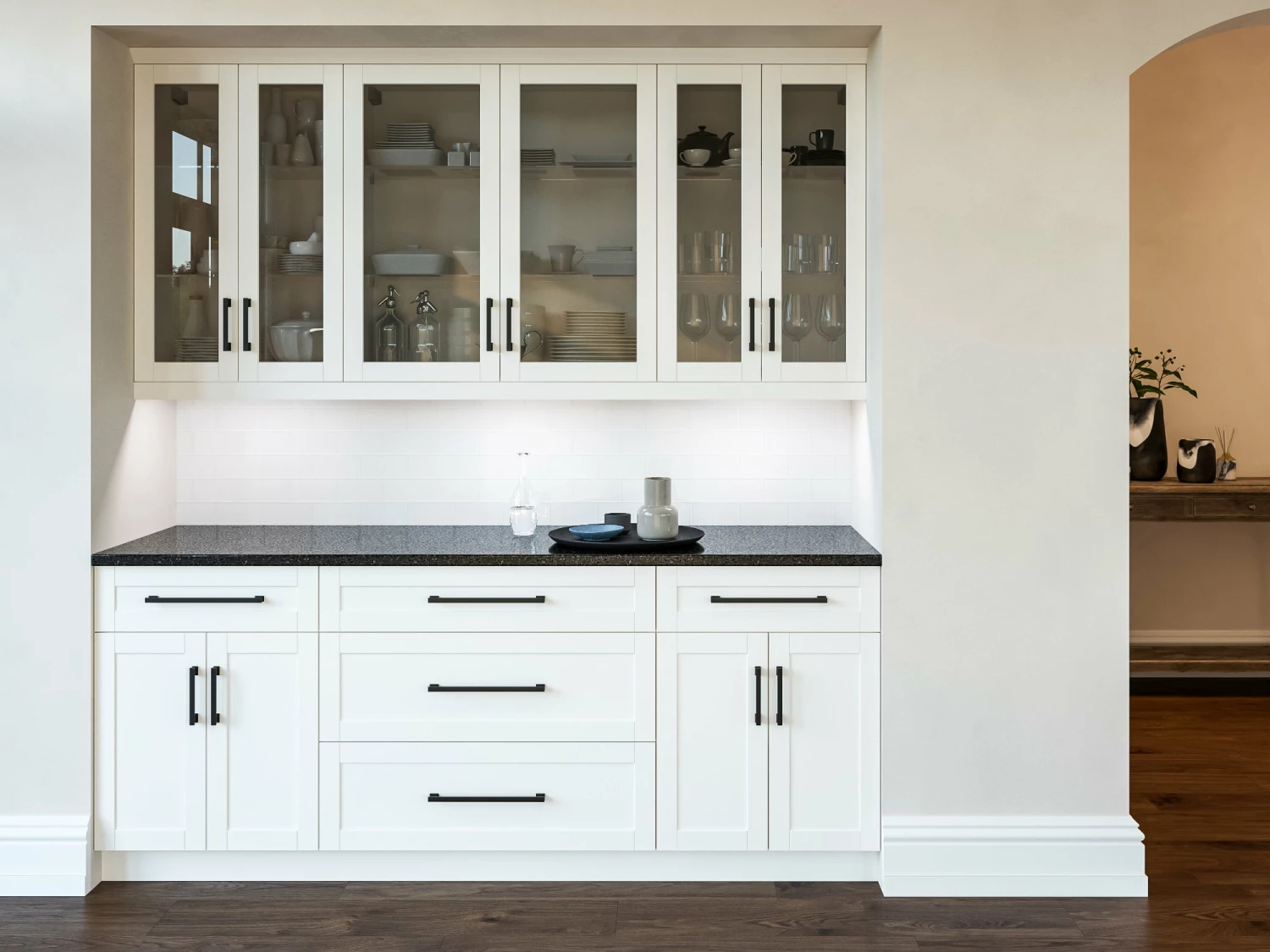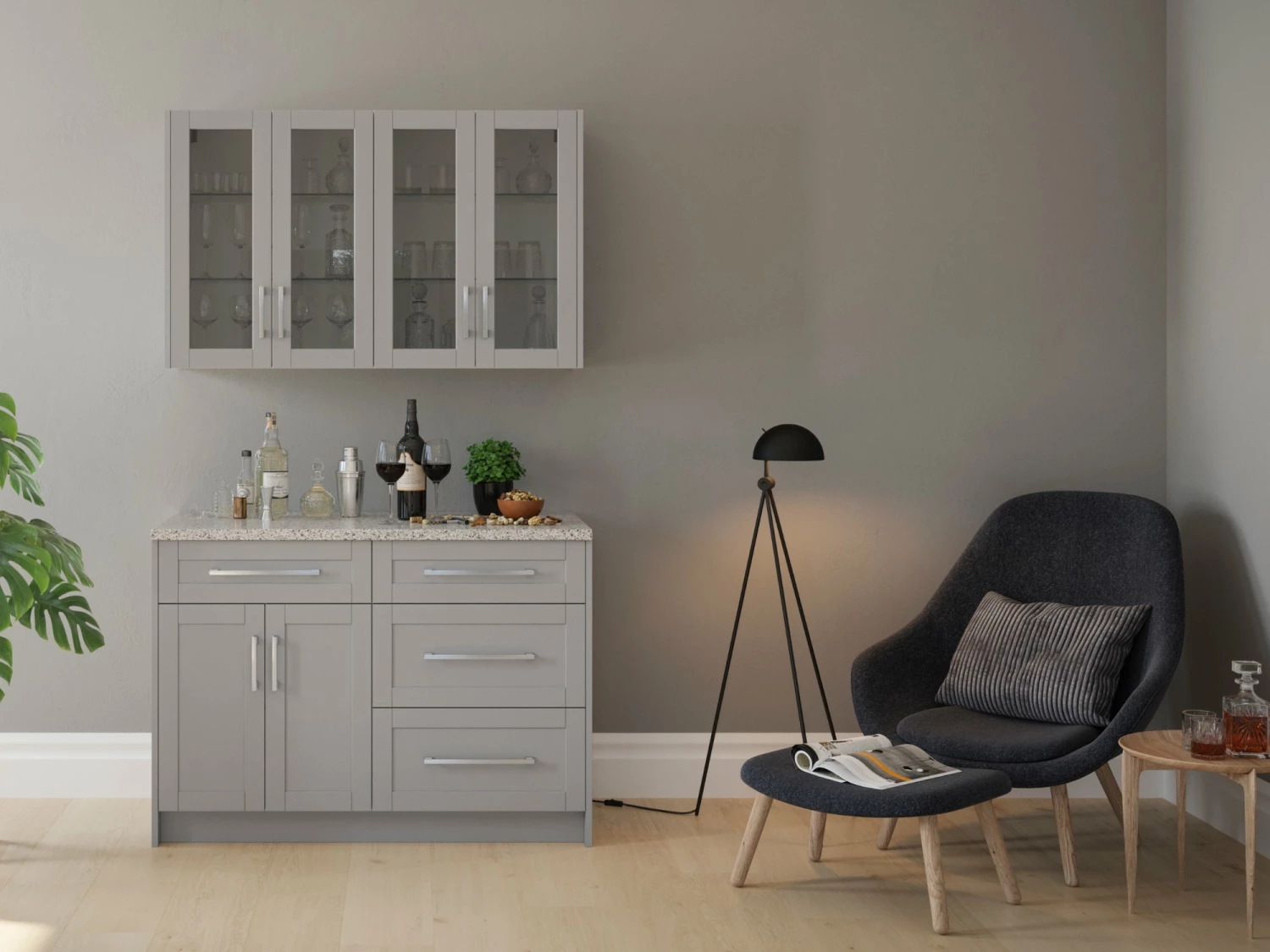 Entertain in style with our fully-assembled home cabinet sets. These versatile units are ideal as a home bar, dining room serving area, media room snack station or anywhere you need convenient storage in a sleek, space-saving profile. It’s the perfect place to keep serving sets, place mats, tablecloths and decorations along with glassware and other entertaining essentials. Full-extension drawers feature premium, soft-close hinges. Thick 18mm frame construction delivers outstanding durability beneath an easy-clean surface. Available in your choice of White or Gray matte finishes to complement any décor. Cabinet organizers and accessories sold separately.