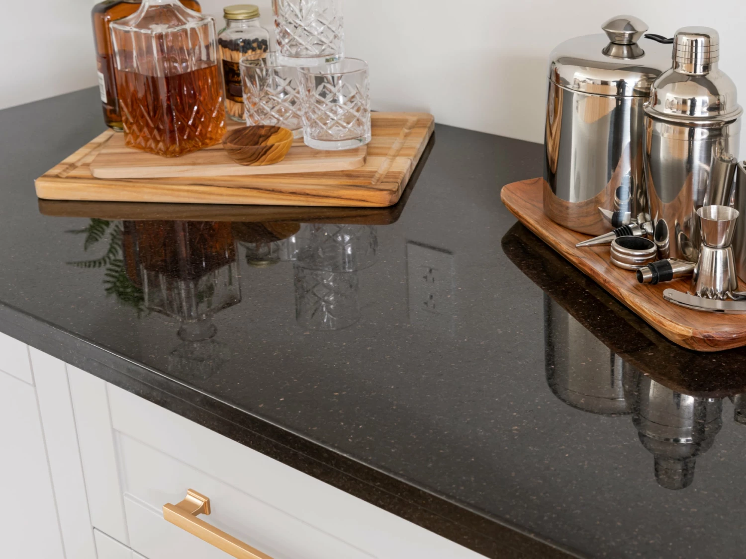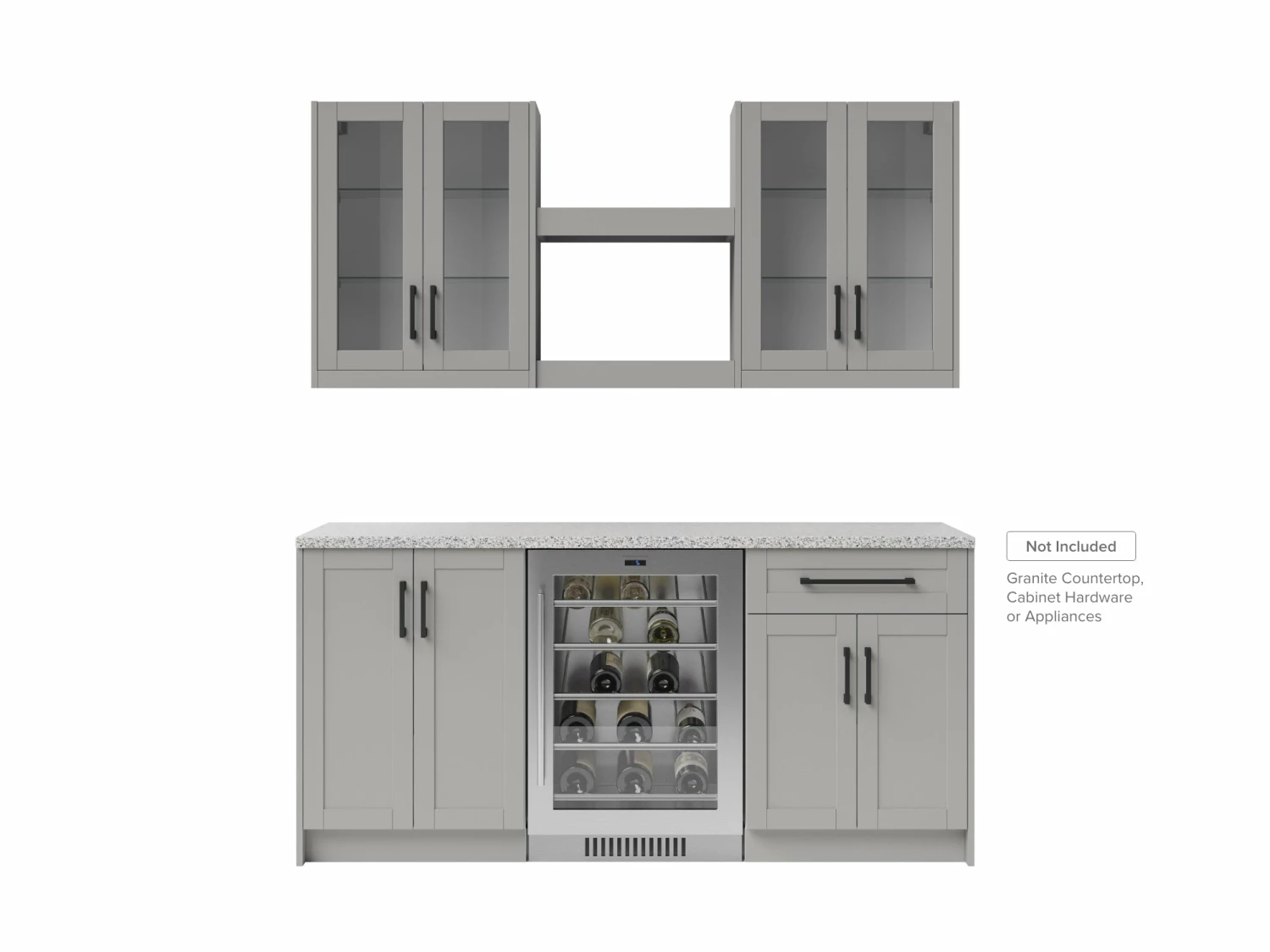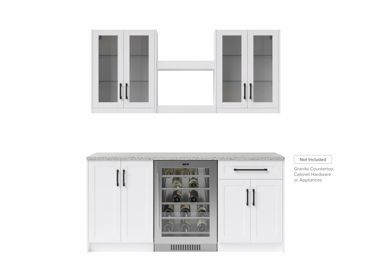 Entertain with flair and enjoy stylish, versatile function in any room with a modular home bar cabinet set. Each fully-assembled set provides convenient storage in a sleek, space-saving profile. Customize with your choice of granite countertops, handles and premium trim. It is the perfect place to keep serving sets, placemats, tablecloths, and decorations along with glassware and other entertaining essentials. Full-extension drawers feature premium, soft-close hinges. Thick 18mm frame construction delivers outstanding durability beneath an easy-clean surface. Available in your choice of white or gray matte finishes to complement any décor. Cabinet organization accessories sold separately.