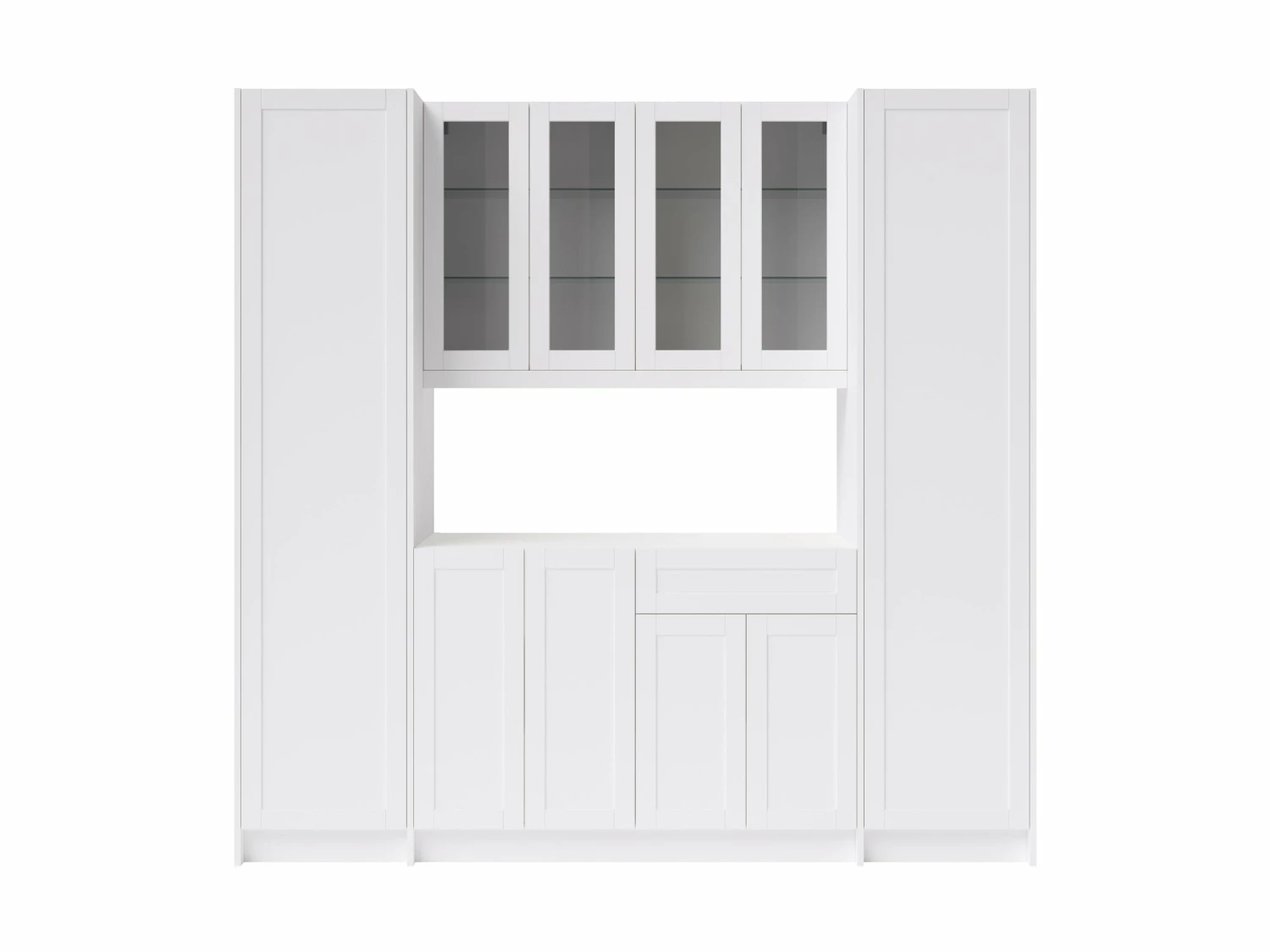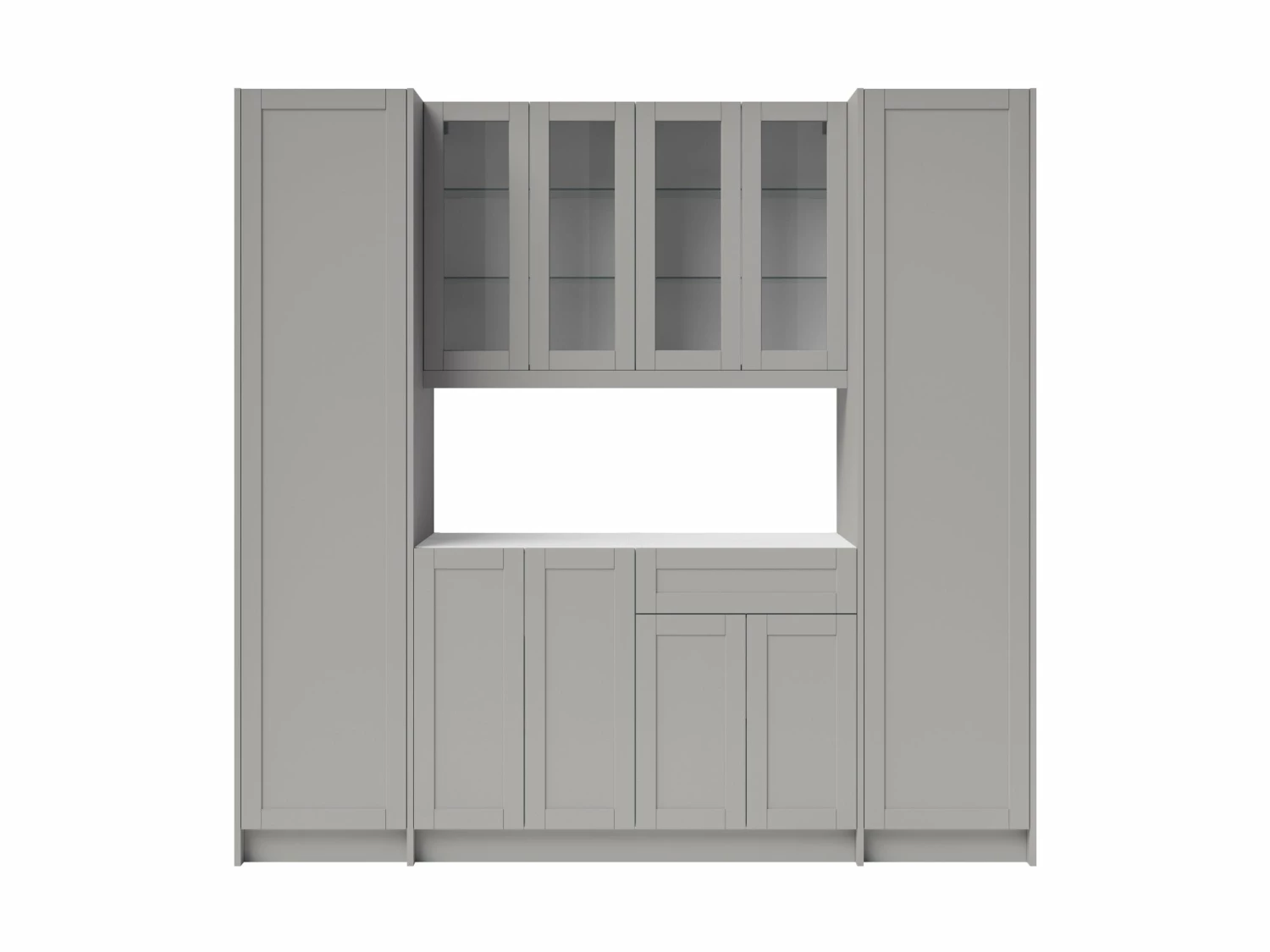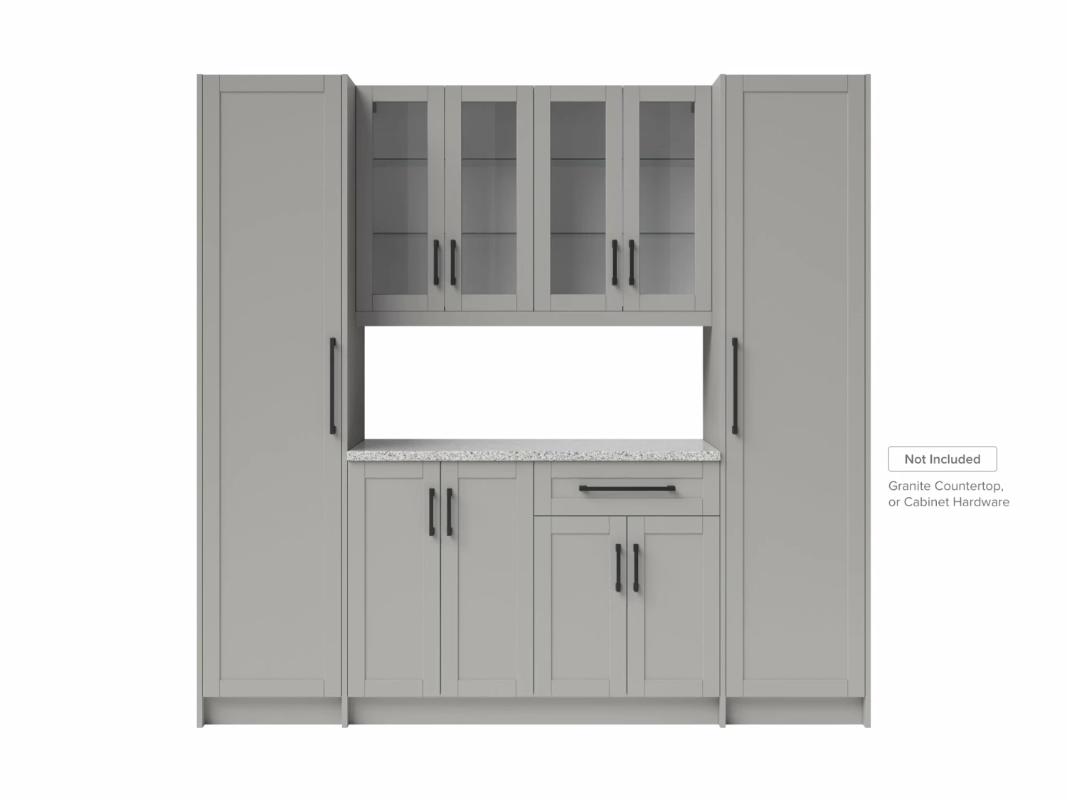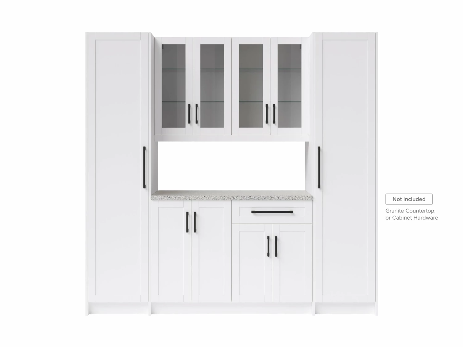 Entertain with flair and enjoy stylish, versatile function in any room with a modular home bar cabinet set. Each fully-assembled set provides convenient storage in a sleek, space-saving profile. Customize with your choice of granite countertops, handles and premium trim. It is the perfect place to keep serving sets, placemats, tablecloths, and decorations along with glassware and other entertaining essentials. Full-extension drawers feature premium, soft-close hinges. Thick 18mm frame construction delivers outstanding durability beneath an easy-clean surface. Available in your choice of white or gray matte finishes to complement any décor. Cabinet organization accessories sold separately.
