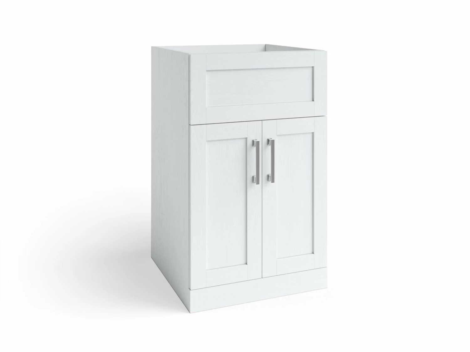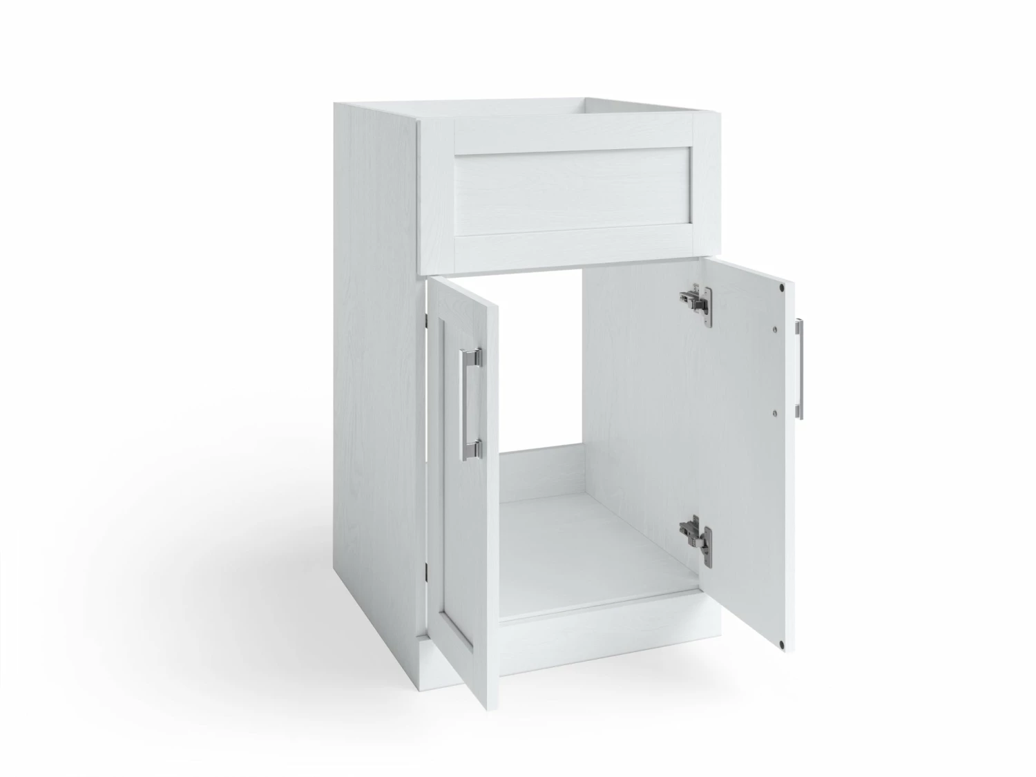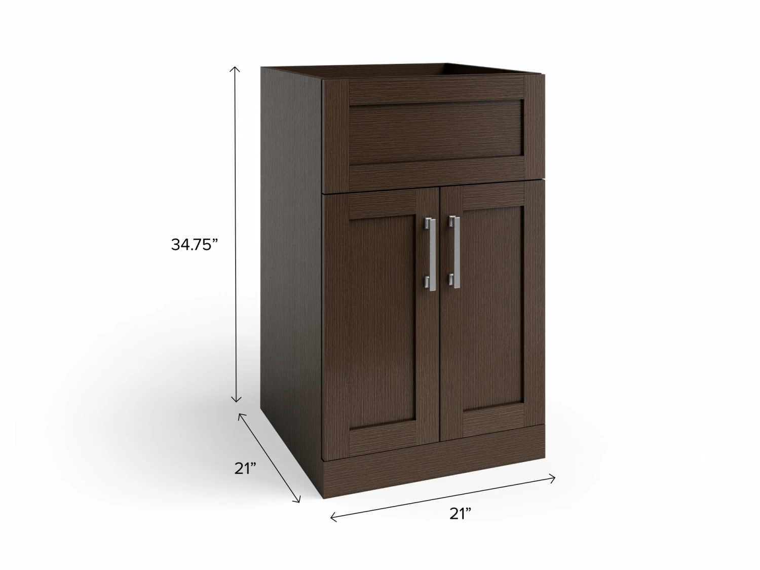 Combining modern style with the convenience of versatile storage, the Home Bar Series 21 in. Sink Cabinet is a functional addition to any space. Simply slot your NewAge sink into the top for a precision fit. A solid plywood core provides the strength to support heavy plates and dishes. Premium soft-close hinges keep your doors aligned and prevent slamming. The Home Bar Series 21 in. cabinetry is available in a variety of colors with a stain-resistant melamine finish that stands up to spills and resists scratches. Nickel-plated handles feature subtle details that accent the classic shaker-style doors and drawers. The two-door design provides wide access to plumbing and under-sink storage. The removable fake drawer front makes sink installation easy, while also ensuring your sink cabinet blends seamlessly with the rest of your cabinetry.