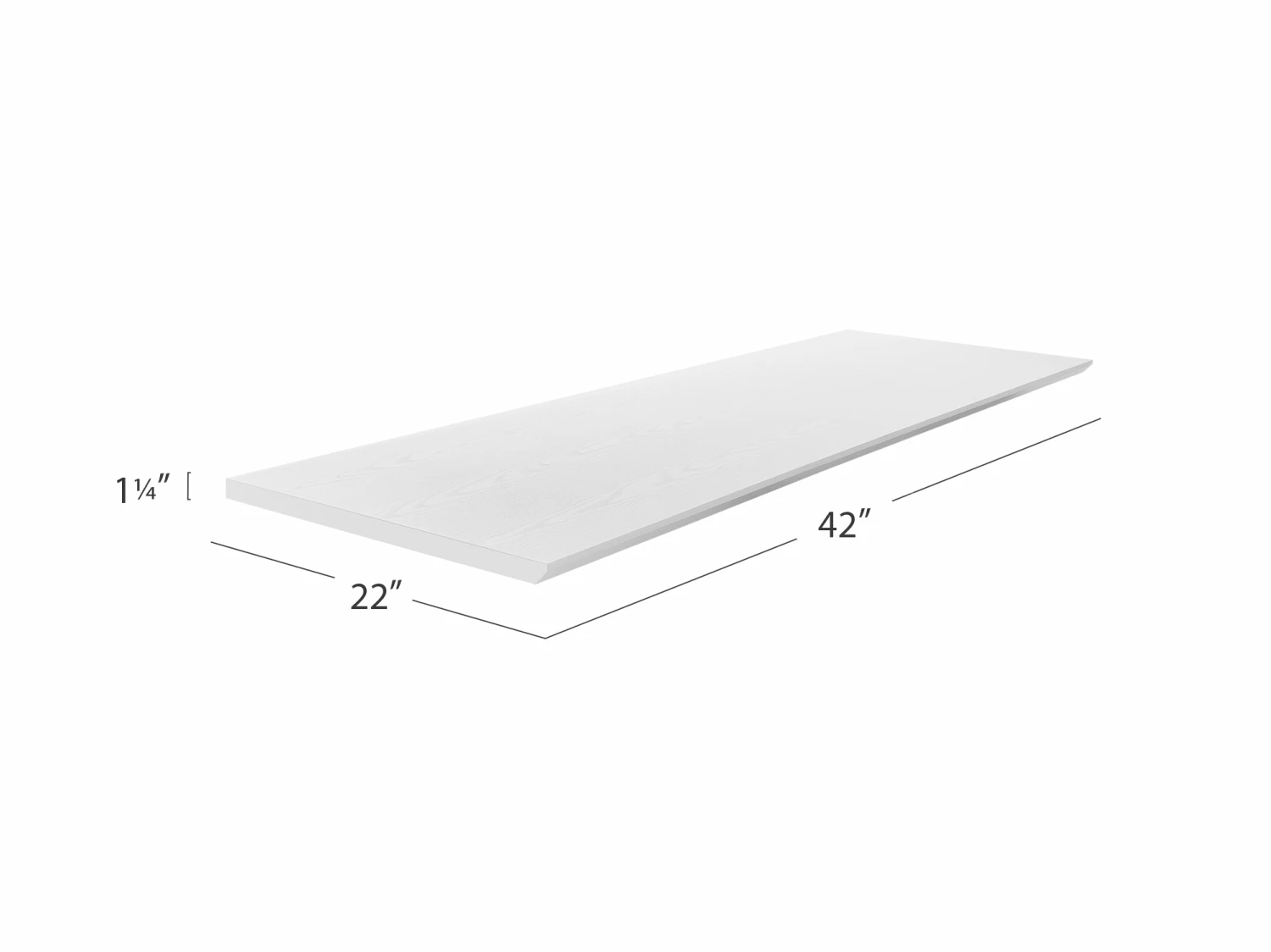 Add more workspace for everyday tasks, storing appliances, and hosting, with a Home Bar Series 42 in. Countertop in White. The 42 in. countertop is built with a solid plywood core, and is designed to fit perfectly over two Home Bar Series 21 in. floor cabinets. A beveled edges adds a classic styling to the countertop that accents the shaker-style cabinets perfectly. The white countertop has a subtle wood-grain texture to brighten up any room. A stain-resistant, melamine finish stands up to scratches and spills, so it is easy-to-clean and durable for everyday use. Add the perfect accessory to your cabinets, with the Home Bar Series 42 in. Countertop in White.