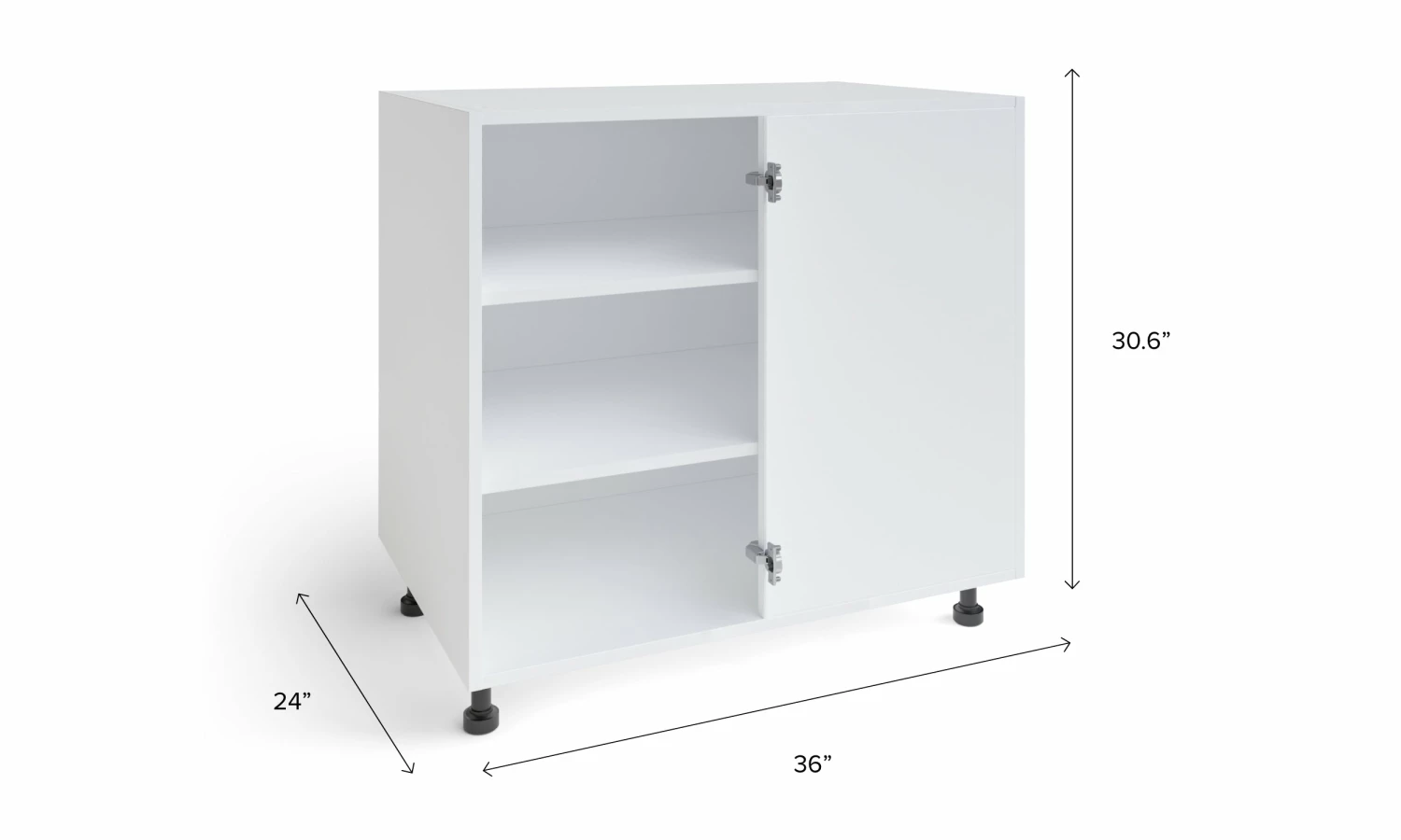 When it comes to efficient use of space, a corner cabinet with storage is a must-have. Our Blind Corner Base Cabinets are the perfect solution for any corner layout, connecting seamlessly to our standard base cabinets for a modern, coordinated look. There are two adjustable shelves inside, while your choice of handle is the final touch of elegance.