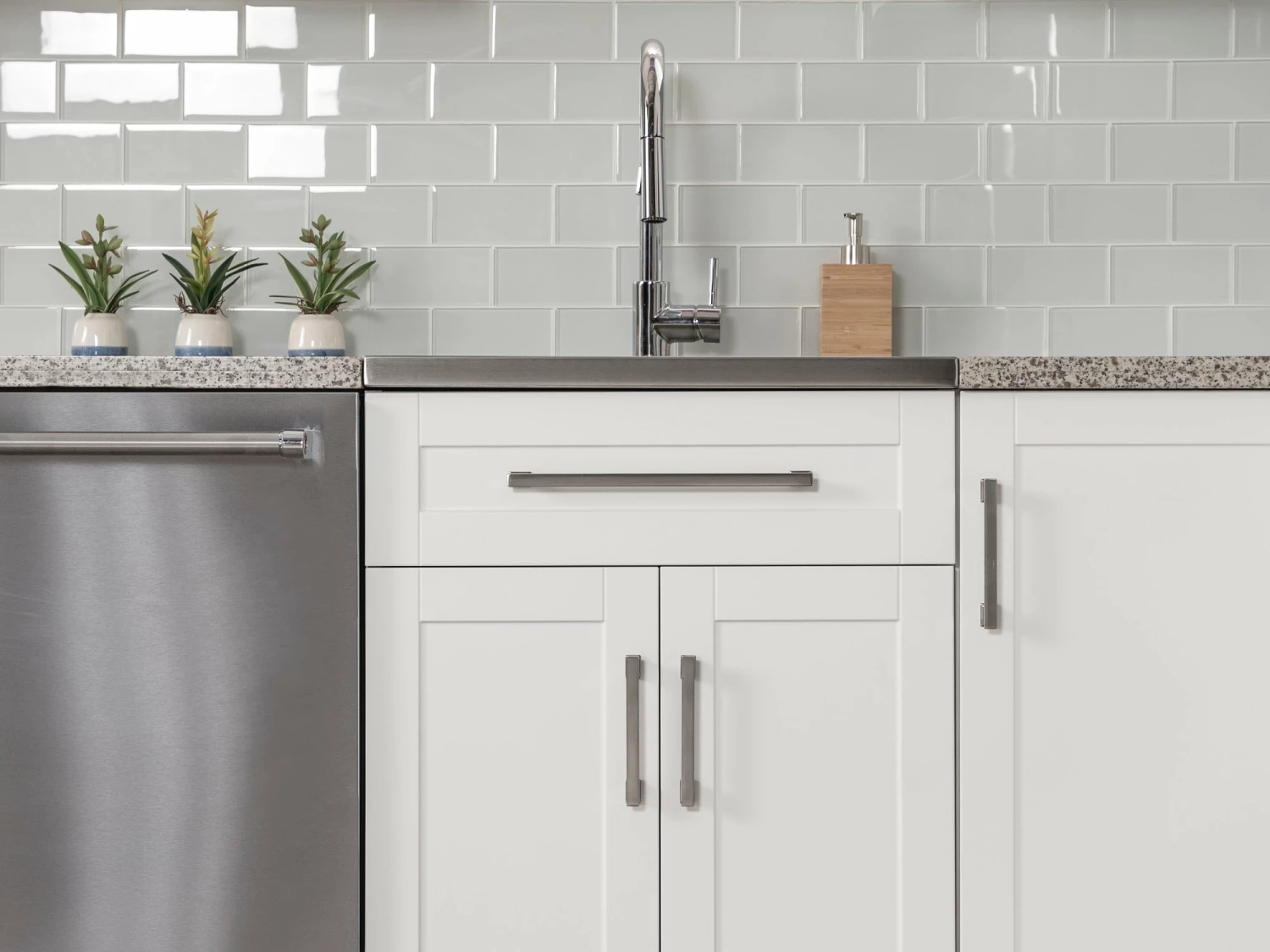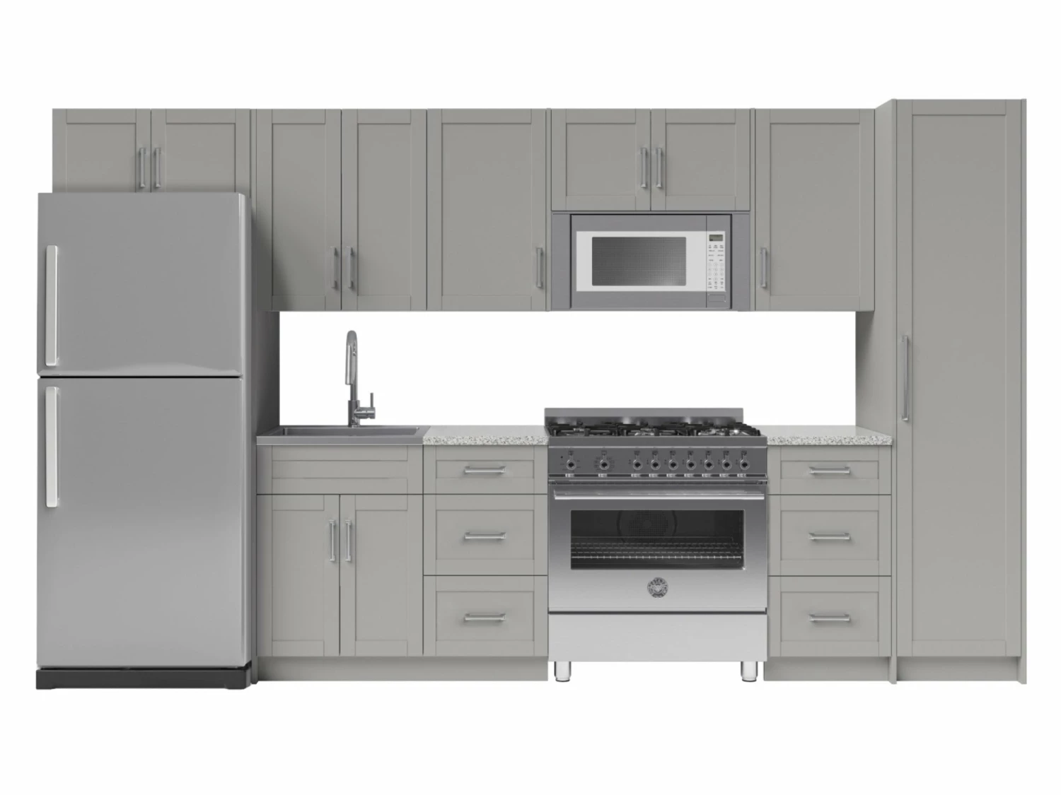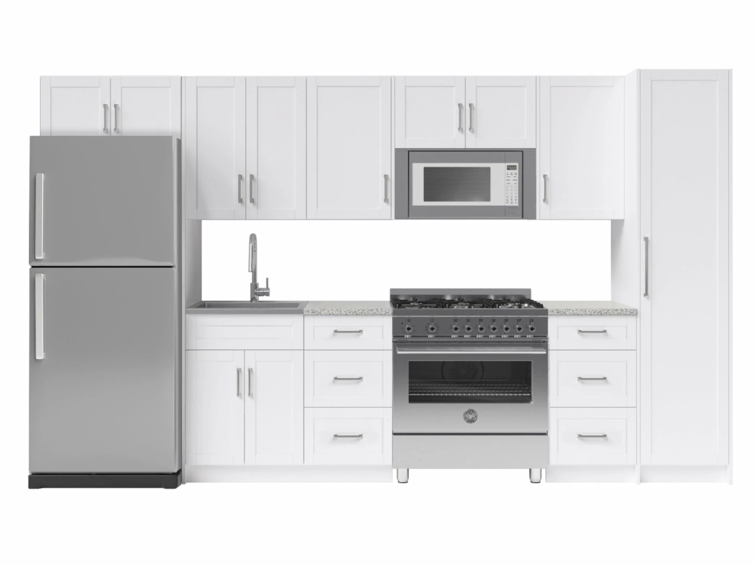 Expertly designed in every detail, our pre-configured Kitchen Sets arrive fully assembled, making them the time-saving, cost-saving way to get a brand new kitchen. Soft-close metal drawer slides and hinges add upscale functionality that’s perfectly complemented by a deep basin, premium stainless steel sink with contemporary pull-down faucet. Strong frames support your everyday items, and our thick 19mm doors are constructed with four layers of lacquer over an MDF core for a smooth, durable matte finish in your choice of classic Gray or vibrant White. The high-end 1-1/4”natural granite countertop completes the look with durable elegance. Your set also includes sleek, modern handles and all the premium millwork you’ll need for a perfectly-finished new kitchen. Cabinet organization accessories sold separately.