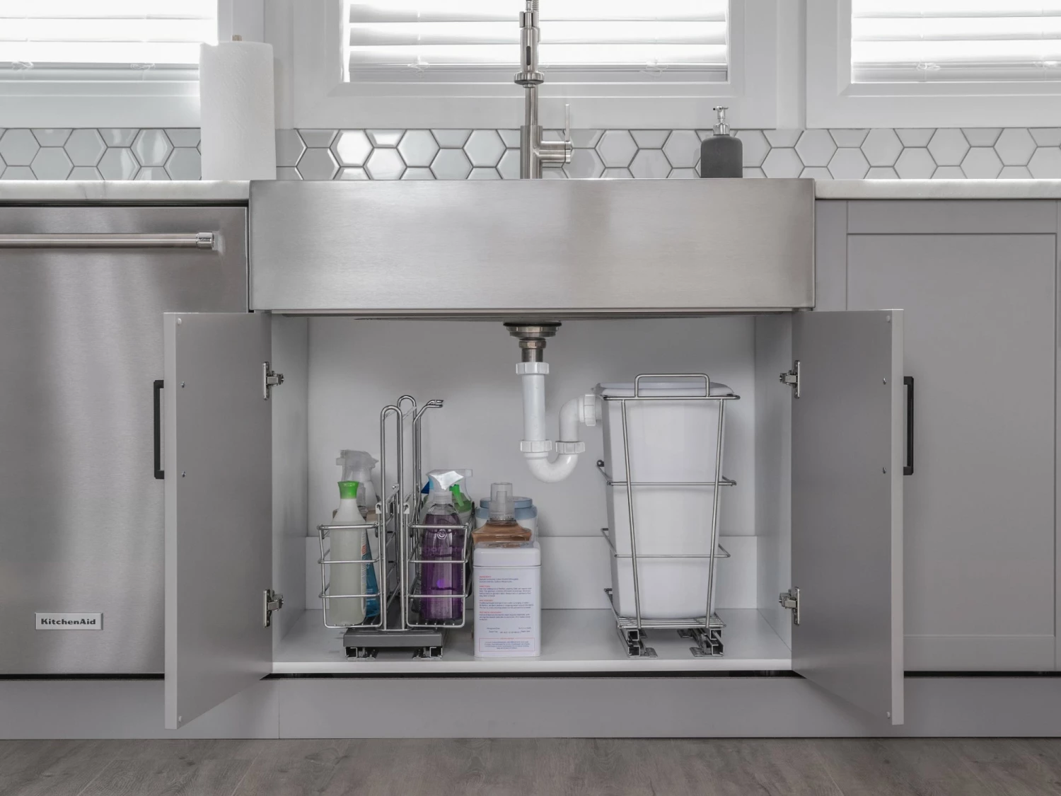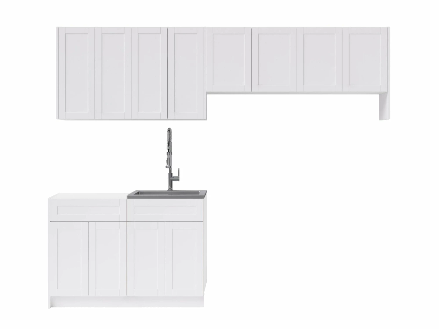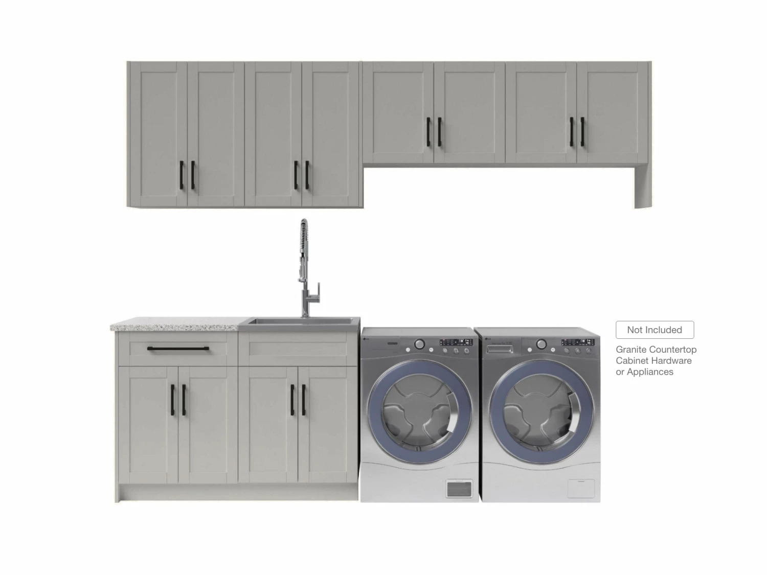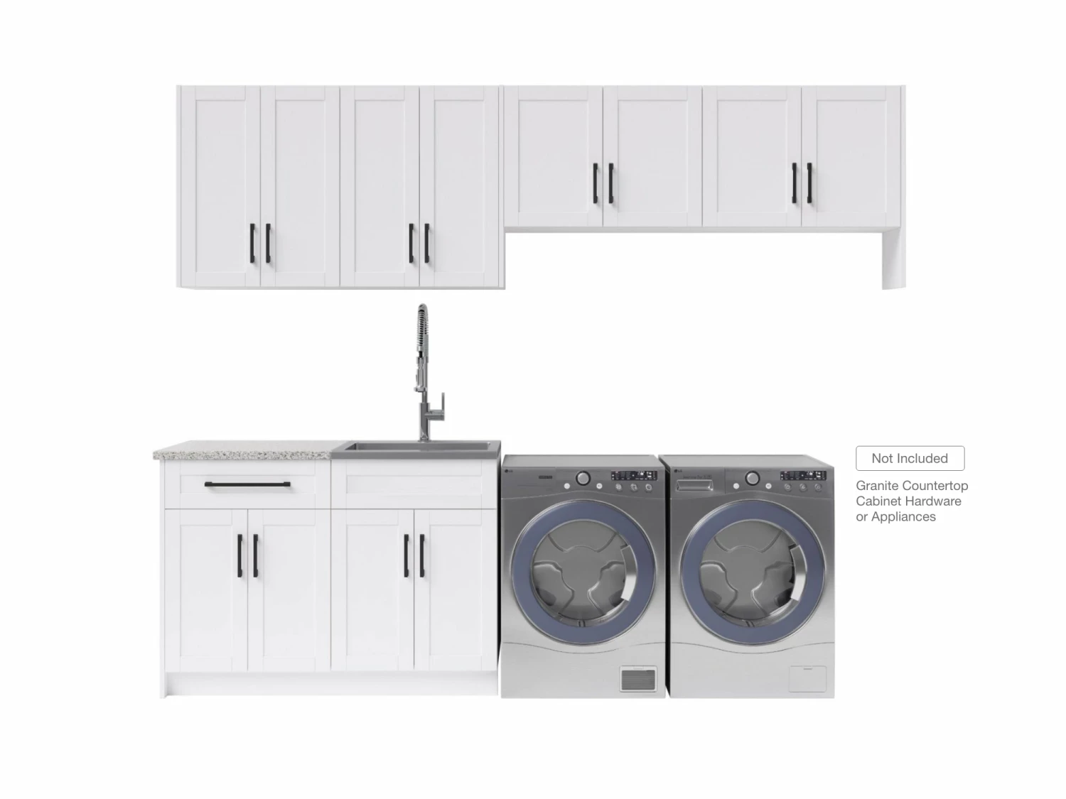 Our Laundry Room Sets arrive fully assembled, making it easy for you to create a stylish, functional space you’ll love. Customize with your choice of granite countertops, handles and premium trim. The strong frames are built for durable support, and our thick 19mm doors are constructed with four layers of lacquer over an MDF core for a smooth, beautiful paint finish. Soft-close metal drawer slides and hinges add smooth functionality, while the modern stainless-steel sink with deep basin and contemporary pull-down faucet combine for a premium experience you’ll look forward to every day. Available in classic White or Gray with your choice of sleek, stylish hardware. Cabinet organizers and accessories are sold separately.