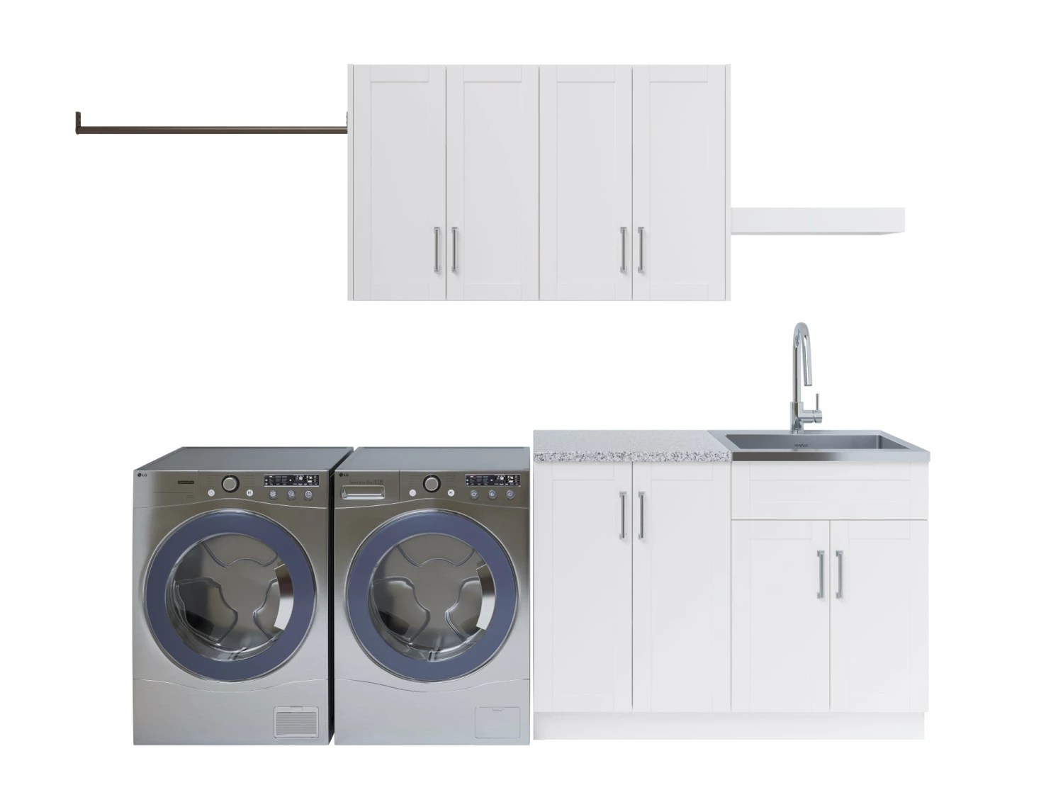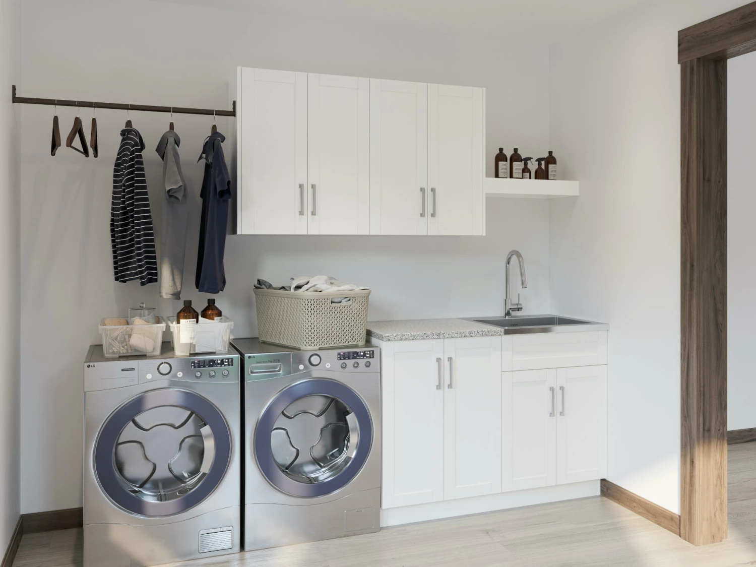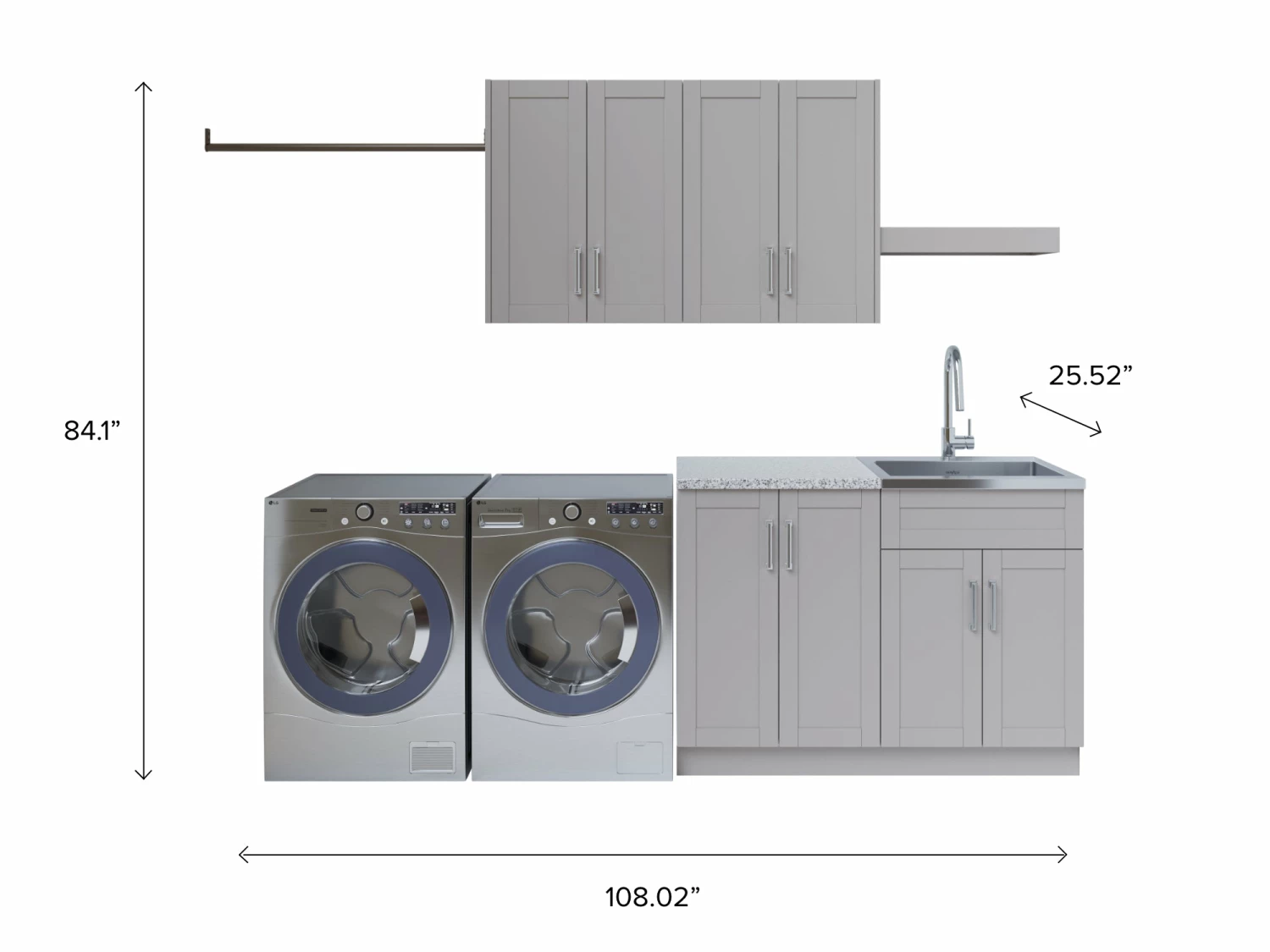 Our pre-configured Laundry Room Set takes the stress away from designing the perfect laundry room. Available in either grey or white, this set comes with twelve high-quality pieces, including cabinetry, a sink and space-saving accessories. Designed with space, convenience and style in mind, this set even includes aesthetic hardware and a contemporary faucet to complete the room.