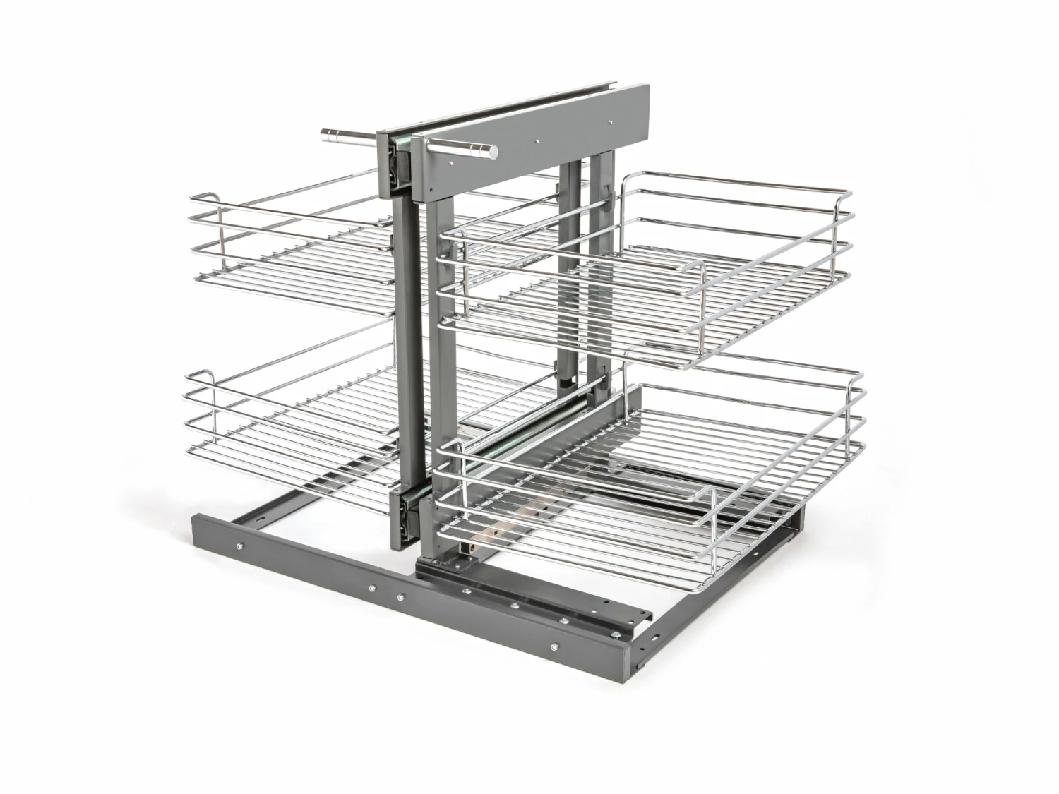 Corner cabinets are a fantastic way to make best use of kitchen space, but access to the back of the cabinet can be awkward. The NewAge Magic Corner allows you to make the most of your cabinet space and keep all the contents organized. It comes with four adjustable baskets and a soft close slide system that makes it easy to access your kitchen essentials. With a sturdy steel alloy construction, this can be used to store and organize a number of items. It’s easy to wipe clean thanks to the polished chrome plated finish and it can be mounted easily to the base panel of your corner cabinet.