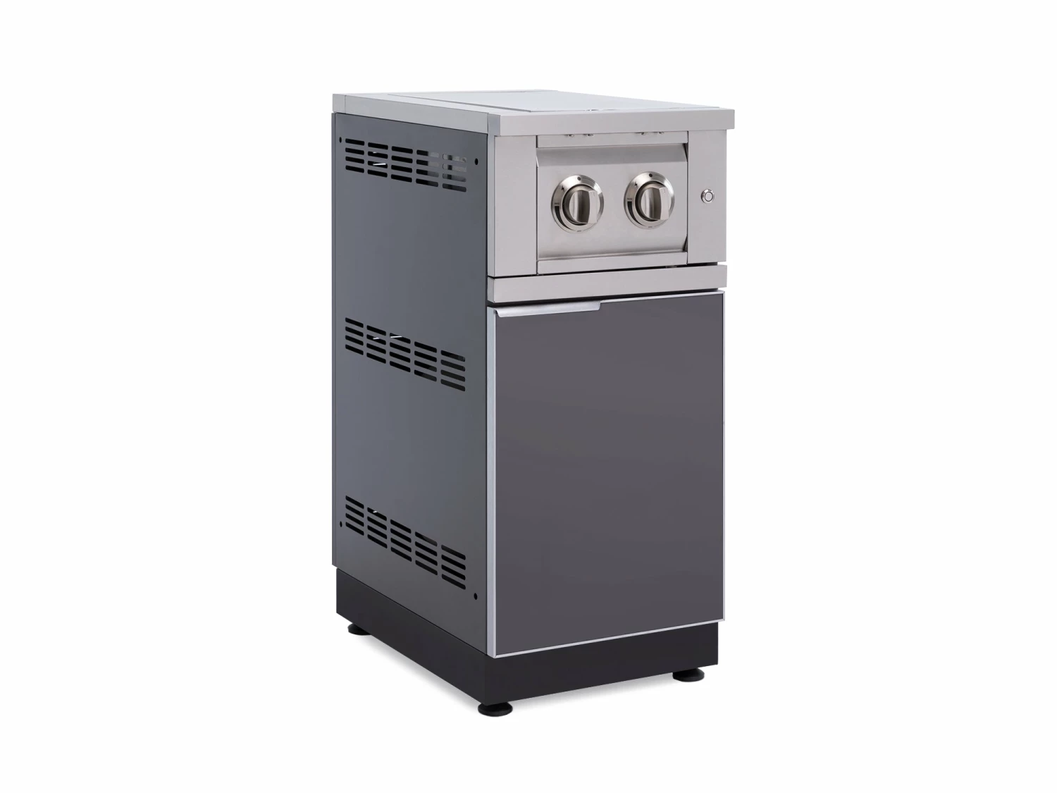 The Outdoor Kitchen Dual Side Burner Cabinet in Aluminum expands your cooking capabilities and is great for everything from cooking large pots of corn, to simmering sauces and side dishes. Equipped with two powerful 12,000 BTU burners providing quick and even heat for the most demanding chefs, and the 1/4″ stainless steel grill is easy to remove and keep clean. Precision-control knobs make it easy to accurately adjust your heat settings, with LED accent lights to improve visibility of temperature markings for evening cookouts. The built-in pilot ignitor allows for a quick and effortless start-up, every time. Protect your burners, and gain additional counter space when not in use, with the fold-down flush-mount lid. The NewAge Products Outdoor Kitchen Dual Side Burner Cabinet in Aluminum is the perfect accent to your outdoor space.