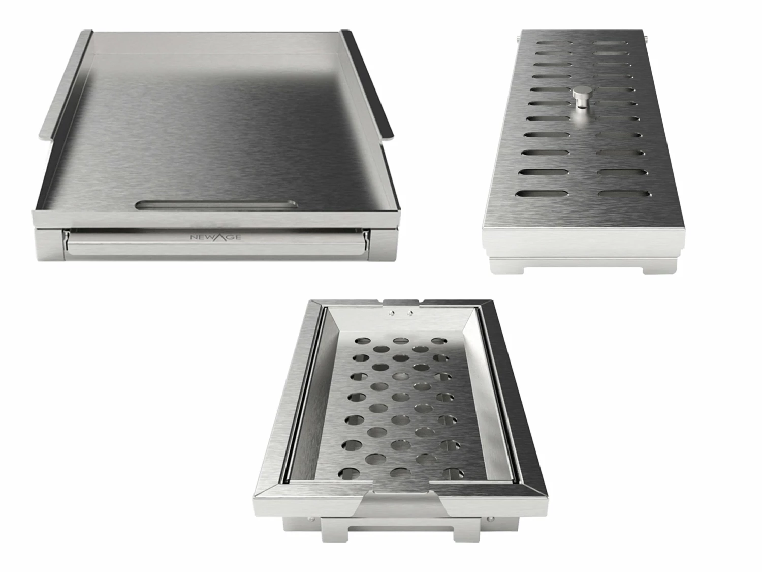 Take your grill to the next level with this 3-piece grilling bundle. All items are constructed with the same premium materials and quality as the NewAge Platinum and Performance Grills and Kamados, and will provide you with versatility for your next cooking adventure. Use the griddle plate for frying, searing and even sauteing. Impart delicious charcoal and wood flavors with the smoker box and charcoal tray. The Outdoor Kitchen 2-Piece Grilling Bundle has the essentials you need for the perfect summer BBQ.