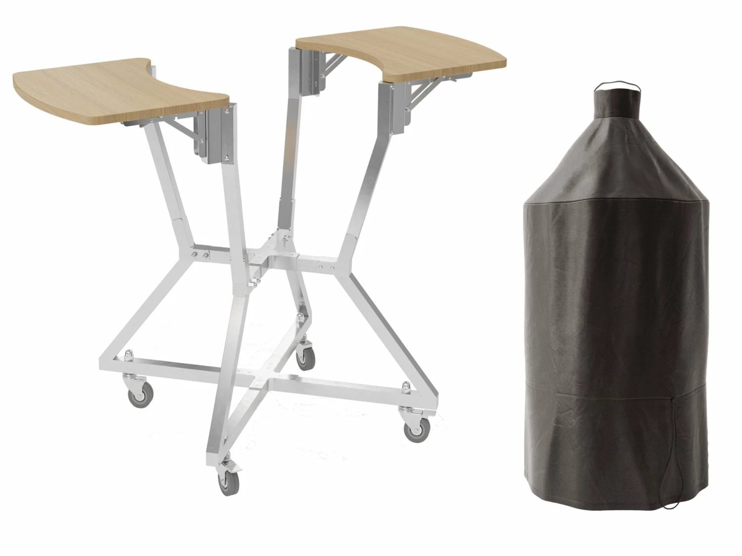 Take your grill to the next level with this 2-Piece Kamado grilling bundle. All items are constructed with the same premium materials and quality as the NewAge Platinum and Performance Grills and Kamados, and will provide you with versatility for your next cooking adventure. the Kamado cart is constructed with 304 stainless steel and grade a premum natural teak to provide you with a long lasting freestanding solution for your NewAge Platinum Kamado. The heavy-duty weather resistant cover keeps your kamado protected all year long. The Outdoor Kitchen 2-Piece Kamado Bundle has the essentials you need to keep your kamado BBQ in prestine condition for years to come.