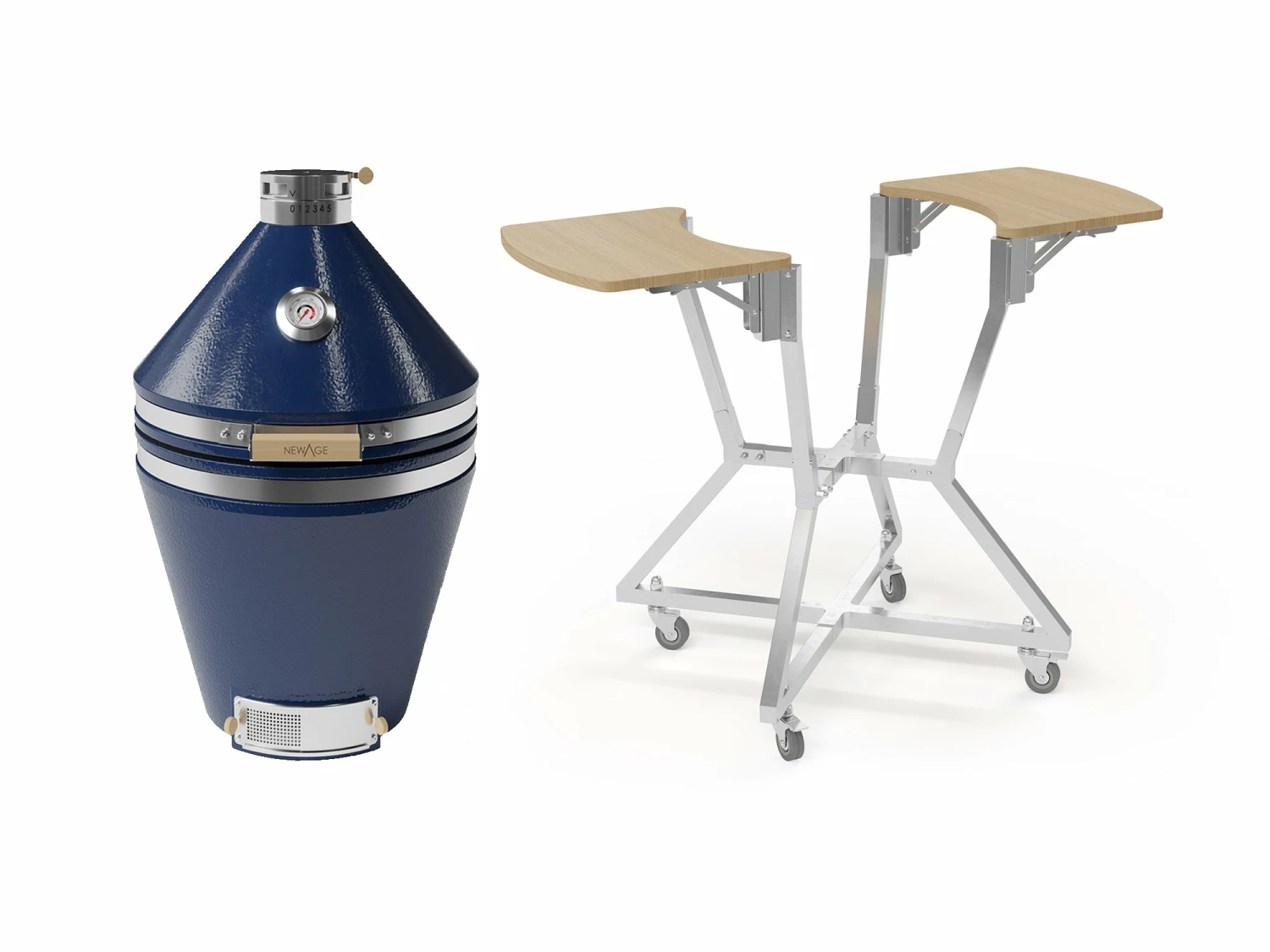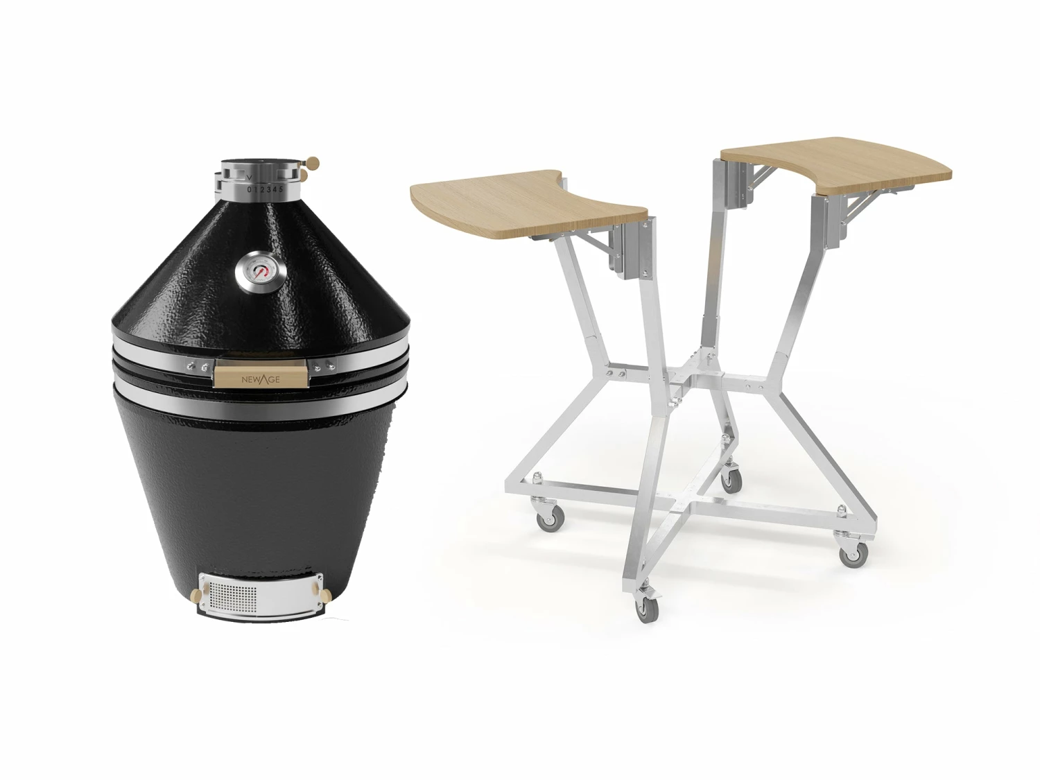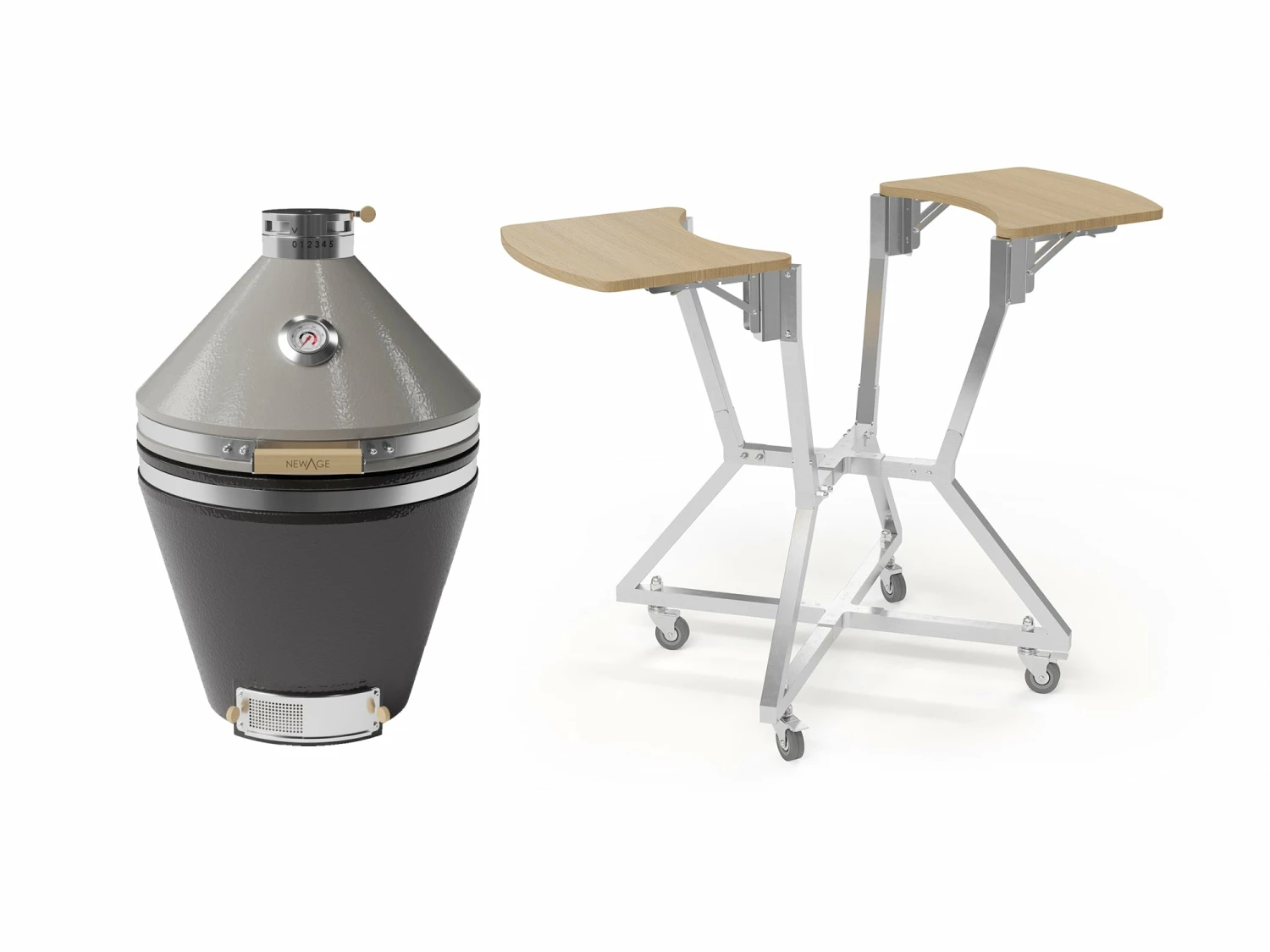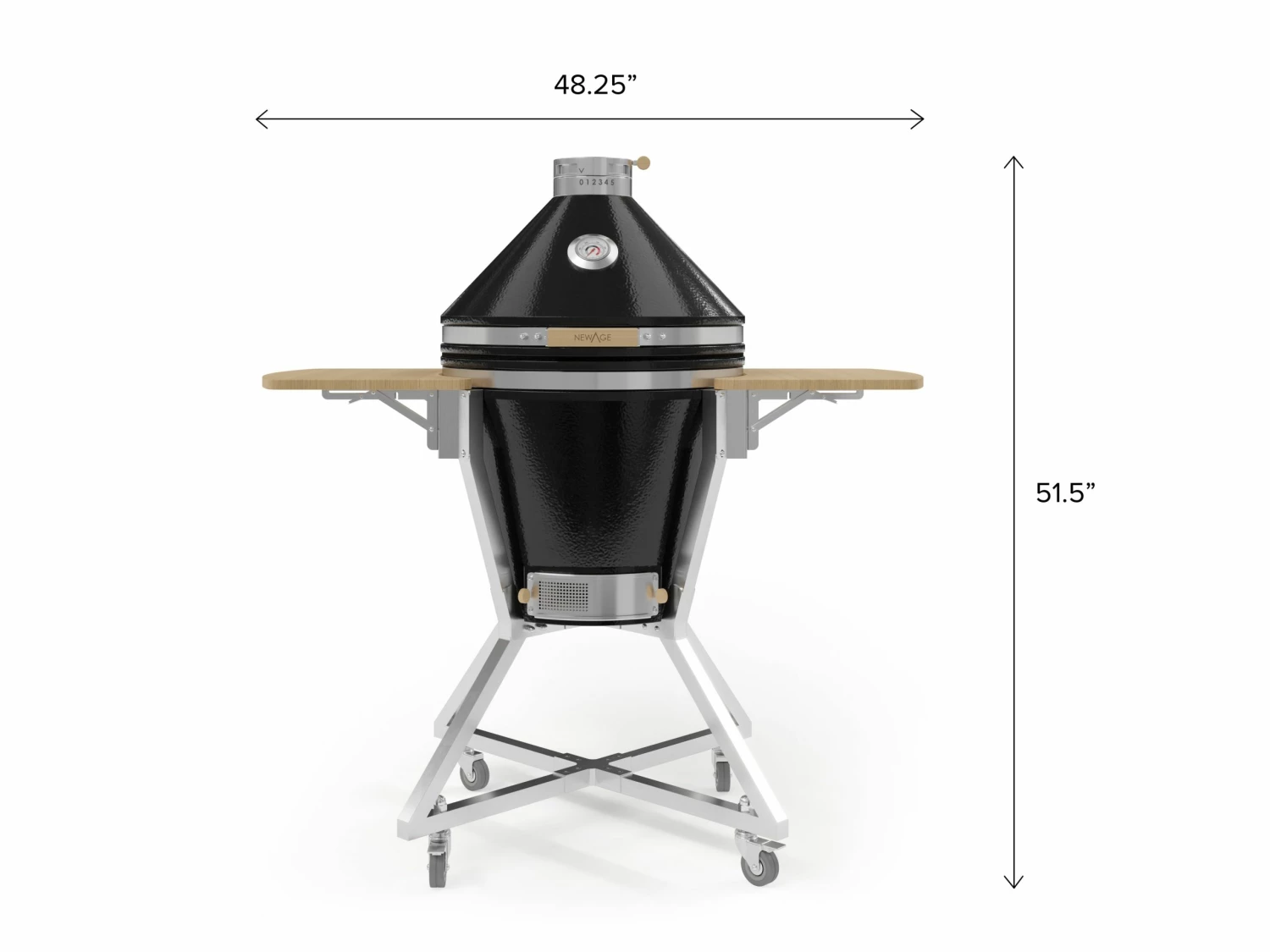 The NewAge Products Platinum Kamado offers up to 450 square inches of cooking space and comes with premium features so you can cook with power, precision, and versatility. Built with 304 stainless steel components, a solid ceramic firebox, and natural premium teak handles, the Platinum Kamado is built for durability, heat retention, and even heat distribution. The patent pending ash bucket is uniquely designed to evenly distribute heat throughout your Kamado and bring it up to speed quicker. It holds up to 3kg of charcoal ash and it’s shape allows for easy clean up with no overflow ash that is messy and can block airflow. 8mm Stainless steel grates provide durability over typical cast iron grates while providing the same heat retention leaving beutiful grill marks on your food. Choose from a variety accessories to add versatility to your next cooking adventure. The NewAge Platinum Kamado allows for both built-in and freestanding integration with our outdoor kitchen cabinetry solutions or our appliance carts.