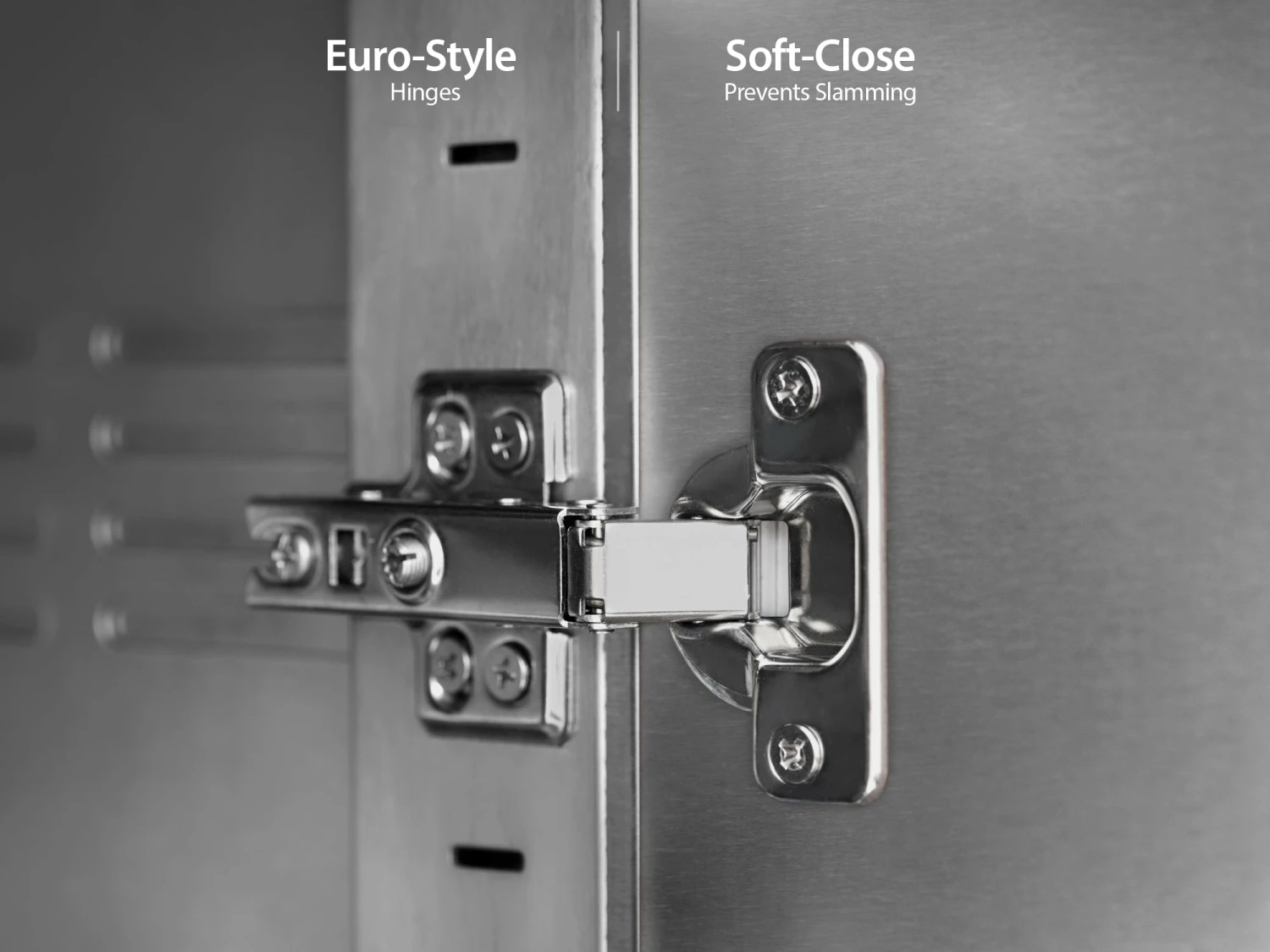 Get grilling, and maximize your backyard storage space, with Outdoor Kitchen cabinets. Constructed from restaurant-grade, with reinforced double-wall doors, these cabinets are weather and corrosion resistant, for all-season durability. Adjustable shelves let you customize your 2-Door Cabinet to store any sized items. The 3-Drawer Cabinet has adjustable upper drawer dividers for cutlery and tool organization, with two extra deep drawers, perfect for storing all your hosting essentials. With brushed doors and beveled aluminum handles, the NewAge Products Outdoor Kitchen cabinets provide a clean, professional look that will get your backyard organized.