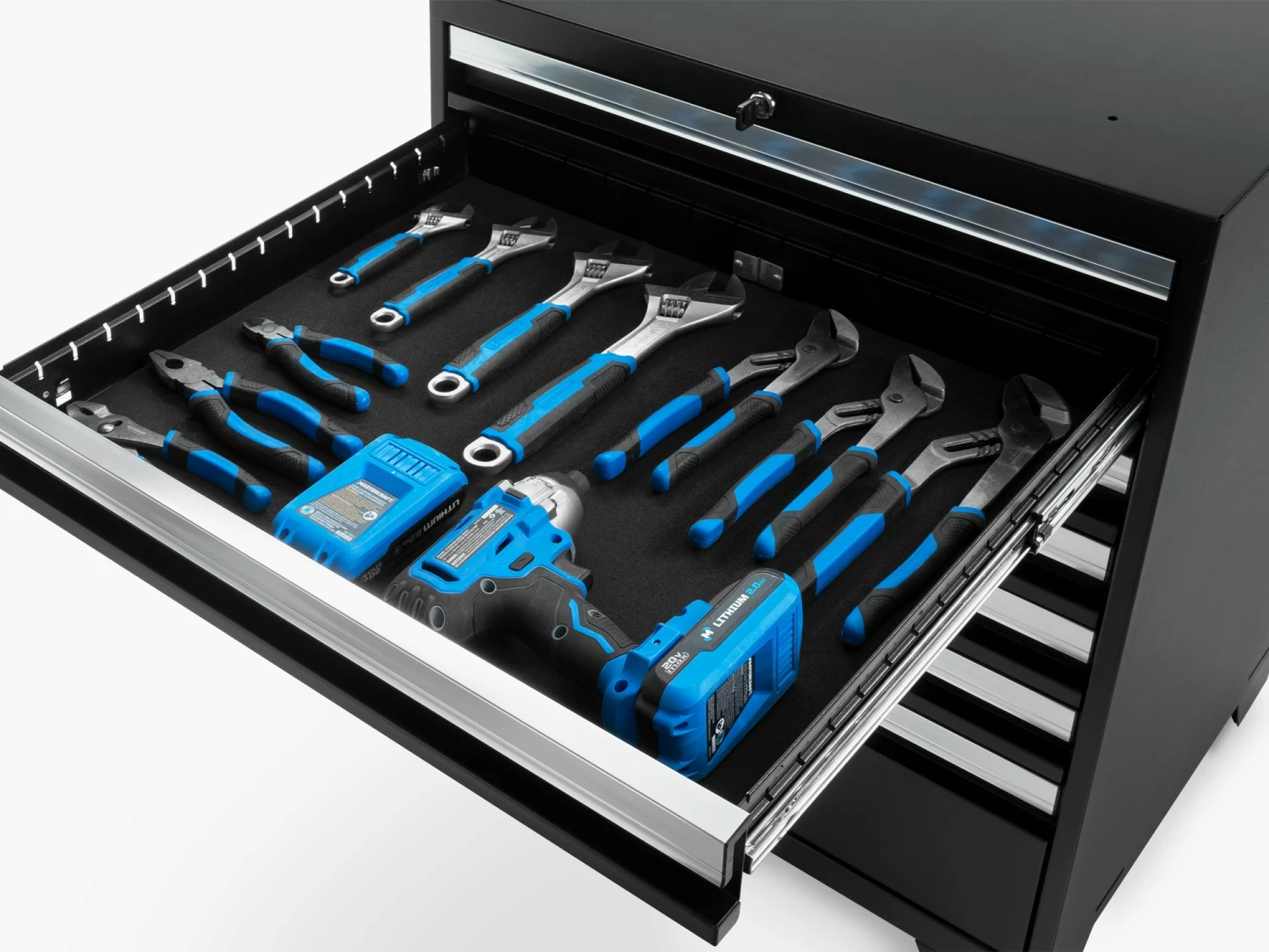 - Holds up to 1,000 lbs. of weight in 7 full-extension drawers