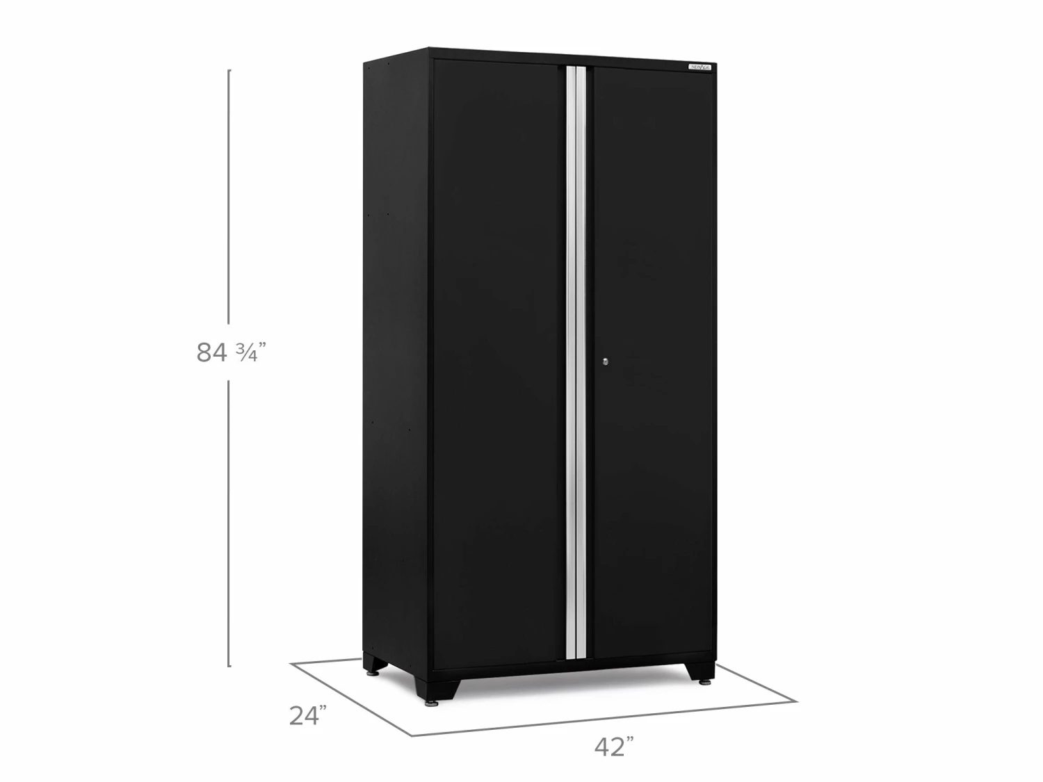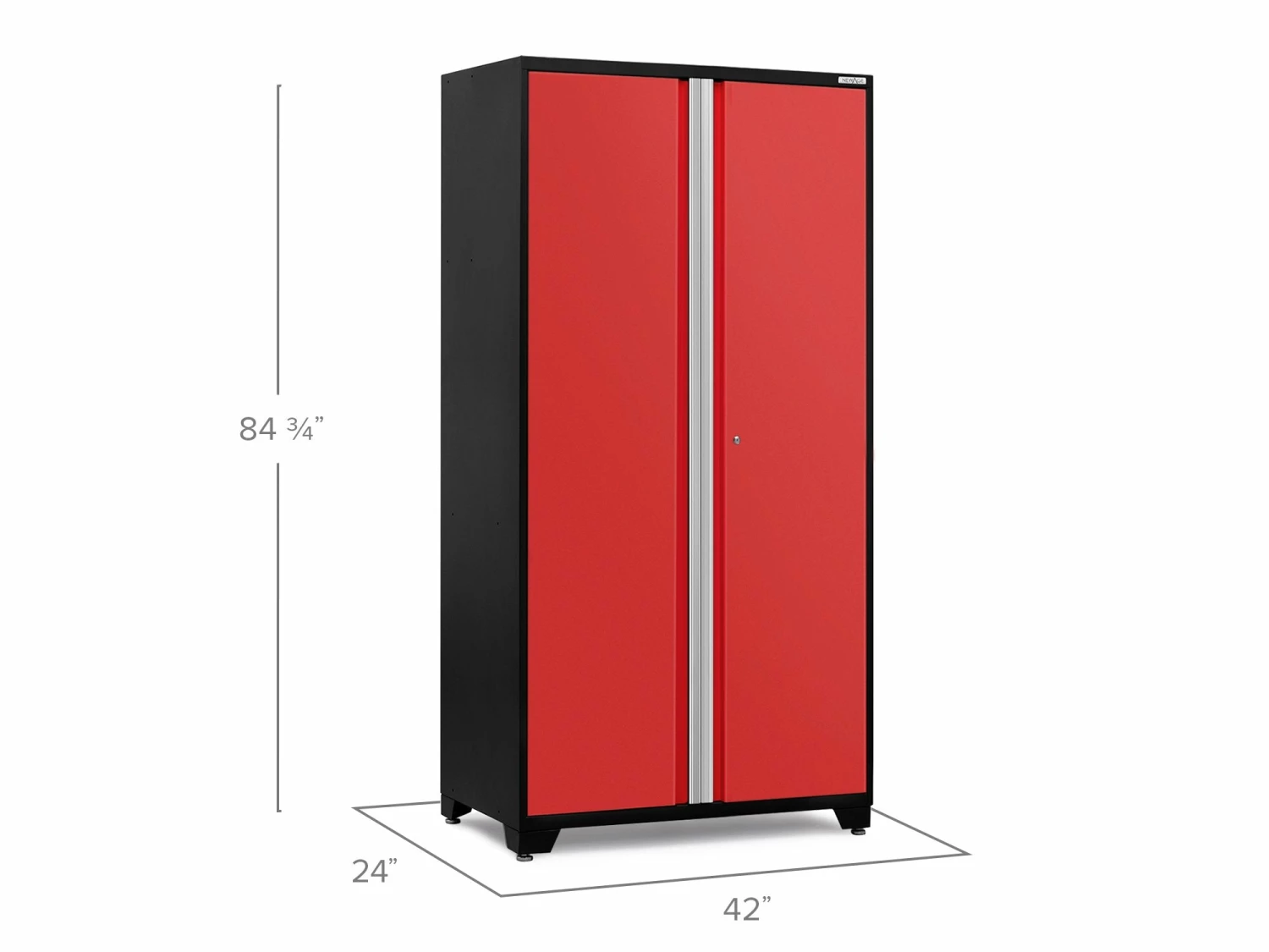 Organize and store more with the Pro Series 42 In. Multi-Use Locker. This extended locker provides you with ample space to house all of your equipment and tools. Built with commercial grade, heavy-duty steel, the locker offers an impressive 1000 lbs. weight capacity and 300 lbs. shelf weight capacity so you can store bulky bins, golf clubs, and other large items with ease. Soft-close hinges on welded steel frames and double-walled doors provide secure, lockable storage for your gear. The durable powder-coat paint finish not only looks great, but also improves the corrosion resistance of the cabinet, and stands up to the rigors of everyday use. The 4 easy-to-adjust steel shelves can be repositioned in one-inch increments to accommodate different sized items and the included removeable closet rod with multi-peg hooks provides ideal hanging space for coats and seasonal clothing. Integrated vents improve air flow to help to dry and air out sports equipment like football pads and hockey gear. Easily attach your own fan or filter onto the vents to further improve air circulation. Keep all your large items organized and ready with the Pro Series 42 In. Multi-Use Locker.