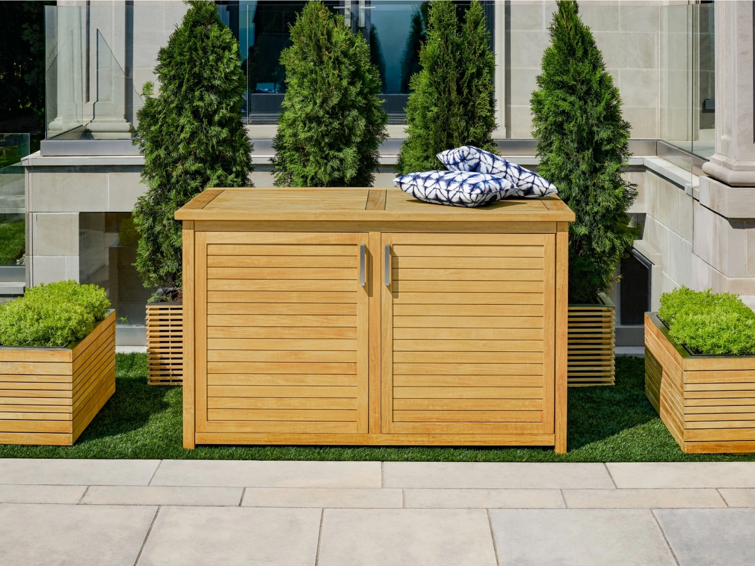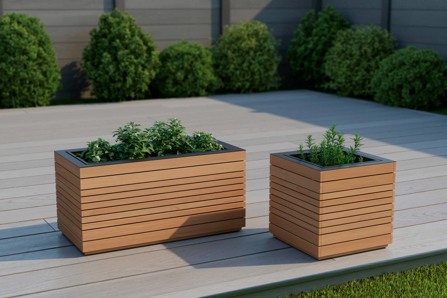 - Add relaxing greenery to your backyard retreat in premium teak planters