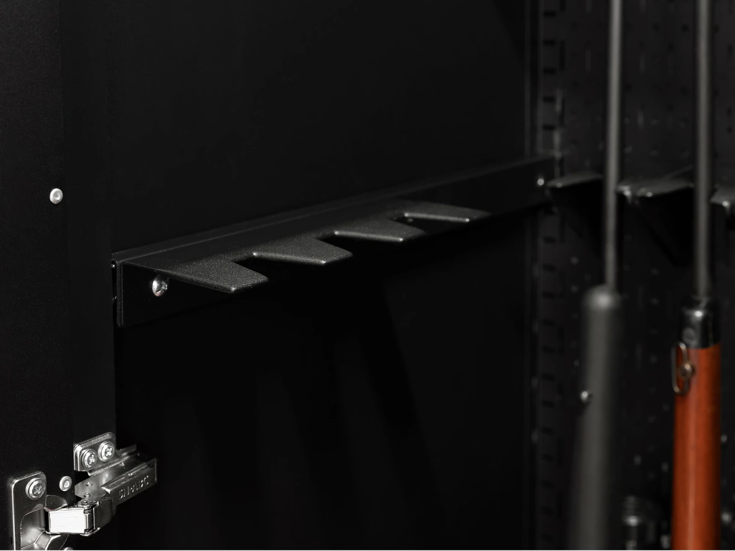 Constructed from heavy-duty steel, the Side Barrel Rests feature a durable powder-coat paint finish with rubber coated tips to protect barrels from getting scratched while also absorbing sound. The versatile Side Barrel Rests allow you to take full advantage of the 24 inch deep Secure Gun Cabinet, and can be used to create a U-shaped set up. When installing each of the Side Barrel Rests, you can choose whether to install one support plate to hold 3 rifles, or two support plates to hold 6 rifles. Easily assemble the Side Barrel Rests using self tapping screws, and mount the sides of your Secure Gun Cabinet. The Side Barrel Rests have been designed to be used alongside NewAge Products 6 Gun Stock Rests.