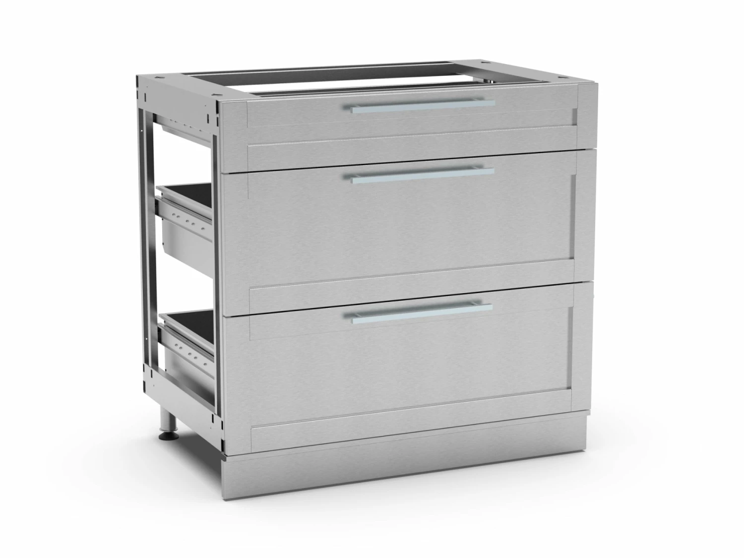 - Two 9 in. drawers and one 3 in. drawer