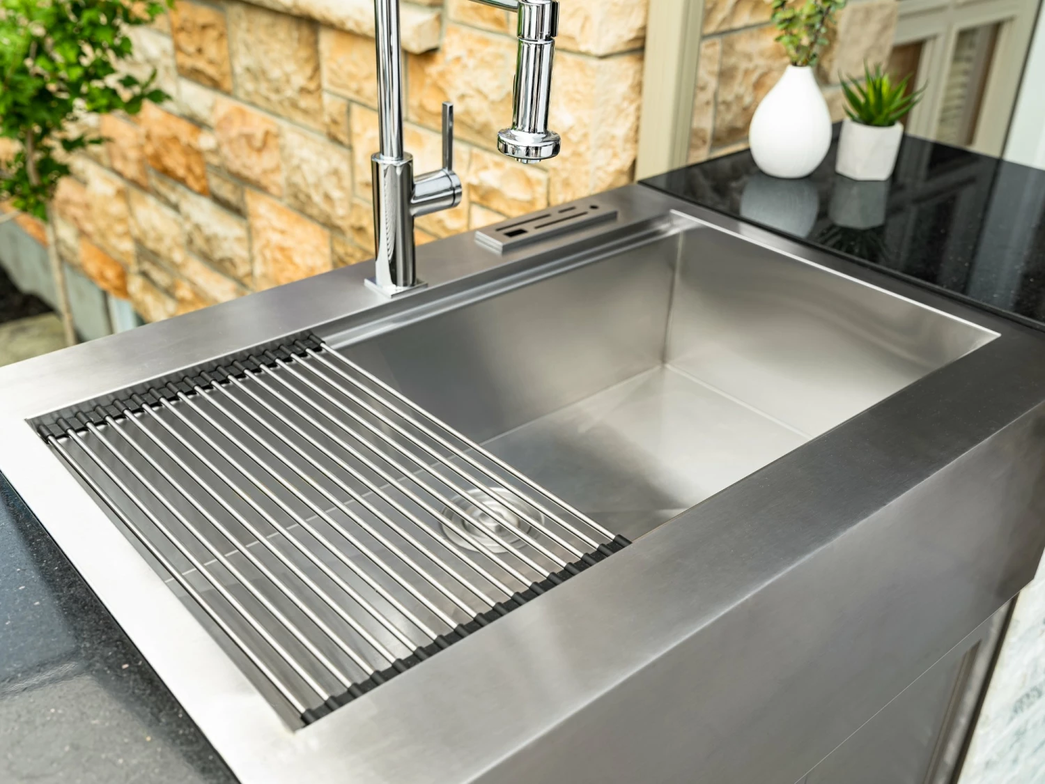 - Stainless steel 36 in. farmhouse sink on pre-assembled frame