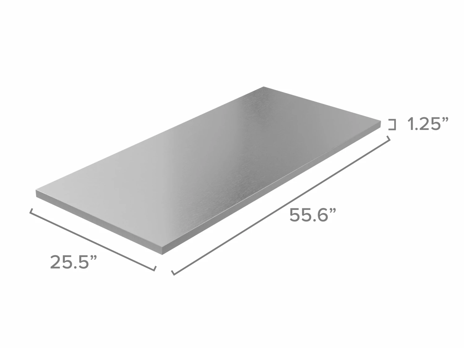54 in. Countertop – 55.6 in. W x 25.5 in. D x 1.25 in. H