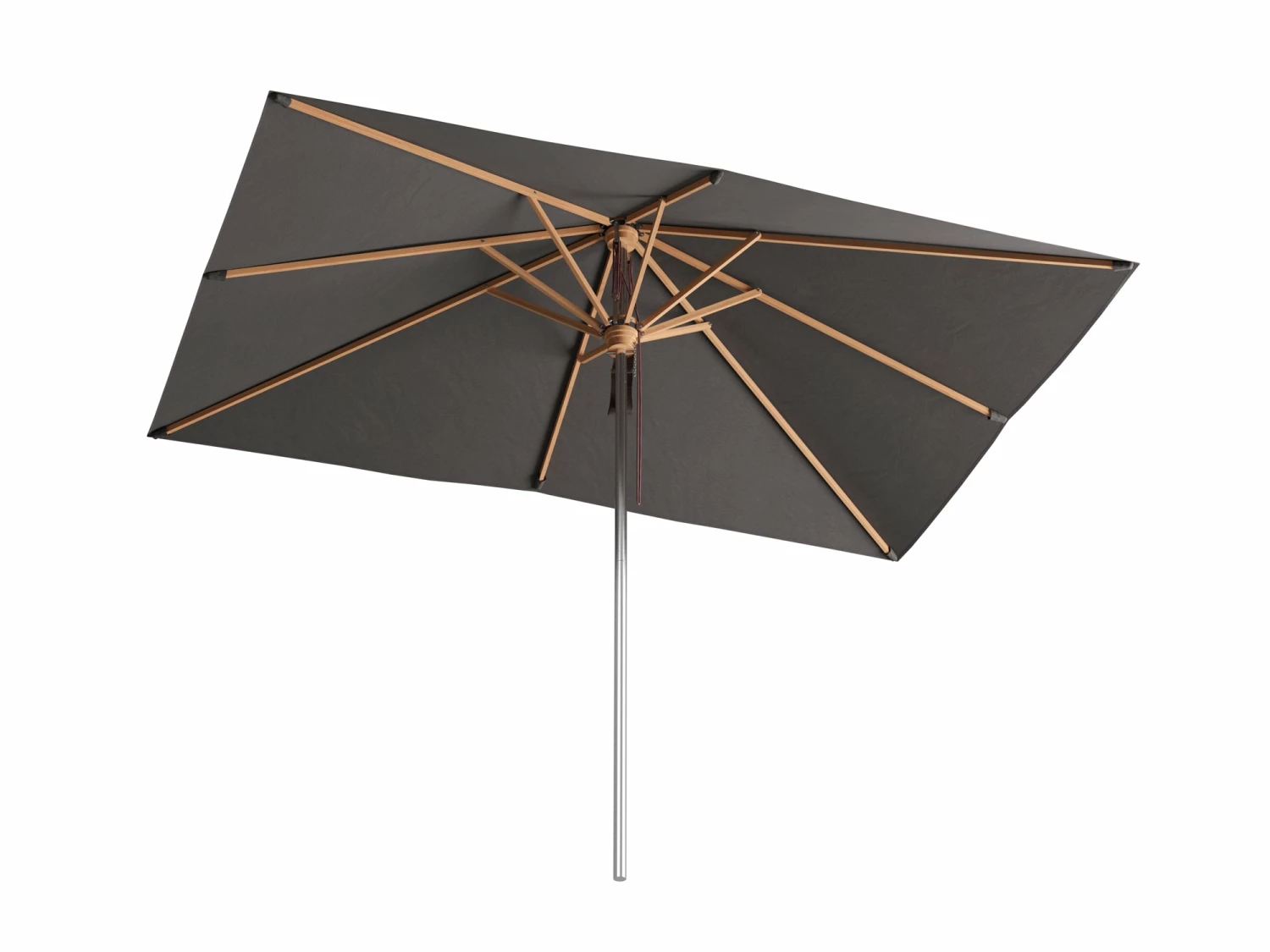 Add a splash of designer color while enjoying your outdoor living space in comfort with a deluxe patio umbrella from NewAge Products. The teak or stainless steel main post provides extra strong support for our large sized canopies, complemented by genuine teak ribs that keep the umbrella shape while adding classic style. Our umbrella canopies are stitched using the highest quality Sunproof material, an acrylic solution dyed fabric that provides over 97% UV protection, resists chlorine and is formulated to repel water, resist stains, mildew and fading for outstanding durability and long-lasting beauty. Opening and closing is smooth and easy, thanks to a convenient dual pulley system featuring premium stainless steel hardware and a durable nylon filament rope. Available in round, square or large rectangular sizes and a range of vibrant designer colors, NewAge umbrellas provide much needed shade so you can enjoy sunny days in perfect comfort.