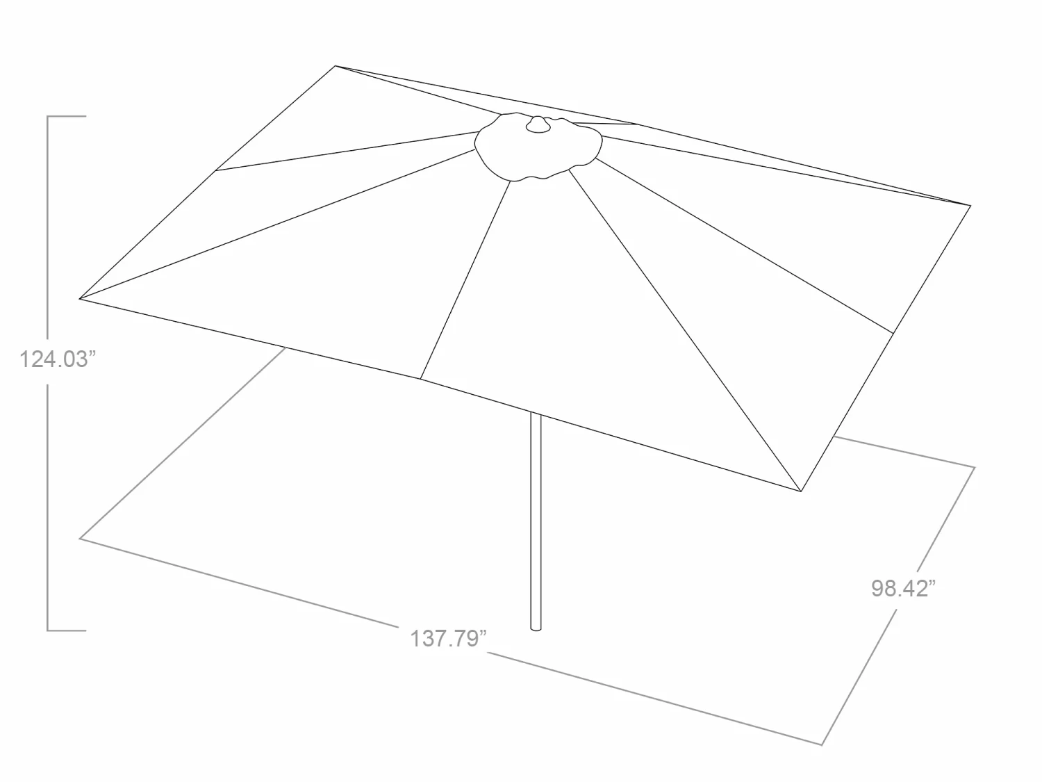 Rectangular Umbrella with Stand– 137.79 in. W x 98.42 in. D x 124.03 in. H
