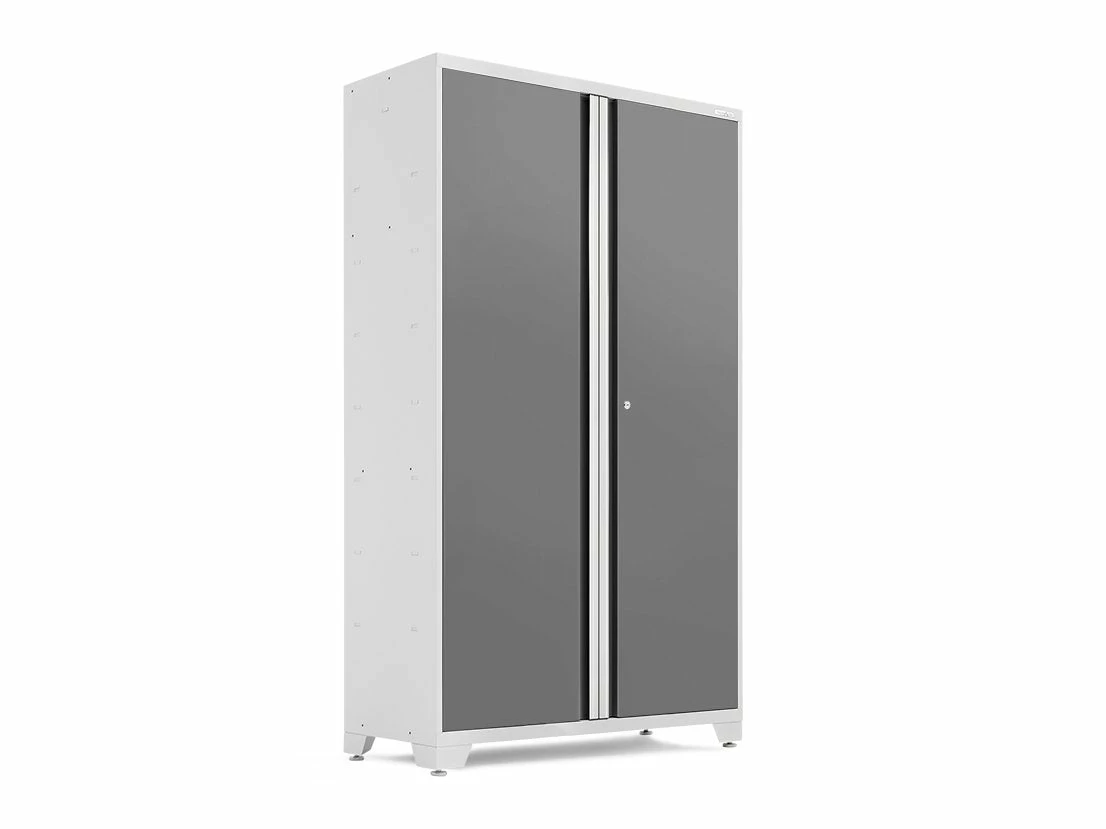 Upgrade the look and organization of your garage with a Bold Series 42 in. Locker. Built with heavy-gauge steel frames for added strength, these cabinets are ideal for storing sports equipment, tools and seasonal décor. Lockable doors with full-length aluminum handles keep your belongings secure, with a flat front profile for maximum clearance for vehicles. Three height-adjustable steel shelves offer customizable storage for items of all sizes, and the included closet rod converts your Locker to a hanging storage closet, great for outerwear and seasonal clothing. The durable paint finish is scratch and rust resistant, to hold up to the tough conditions of your garage. For heavy-duty steel storage with a clean, modern look, the Bold Series 42 in. Locker is a great solution for an organized space.