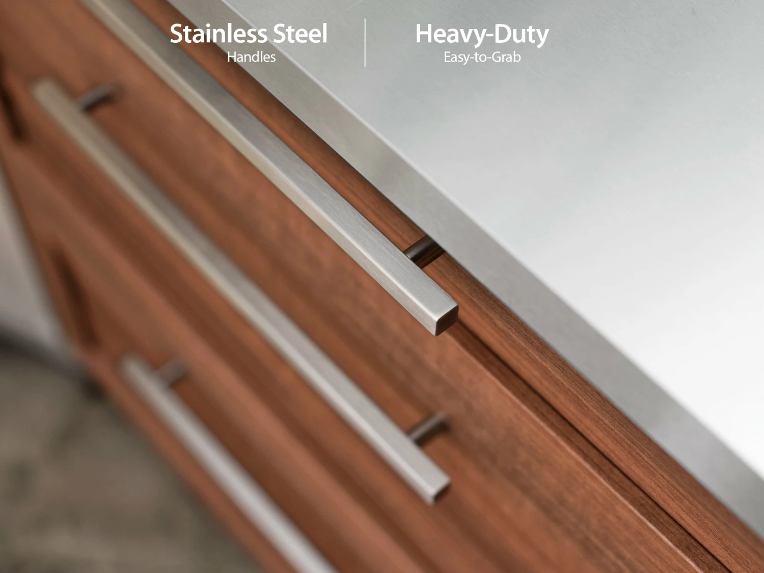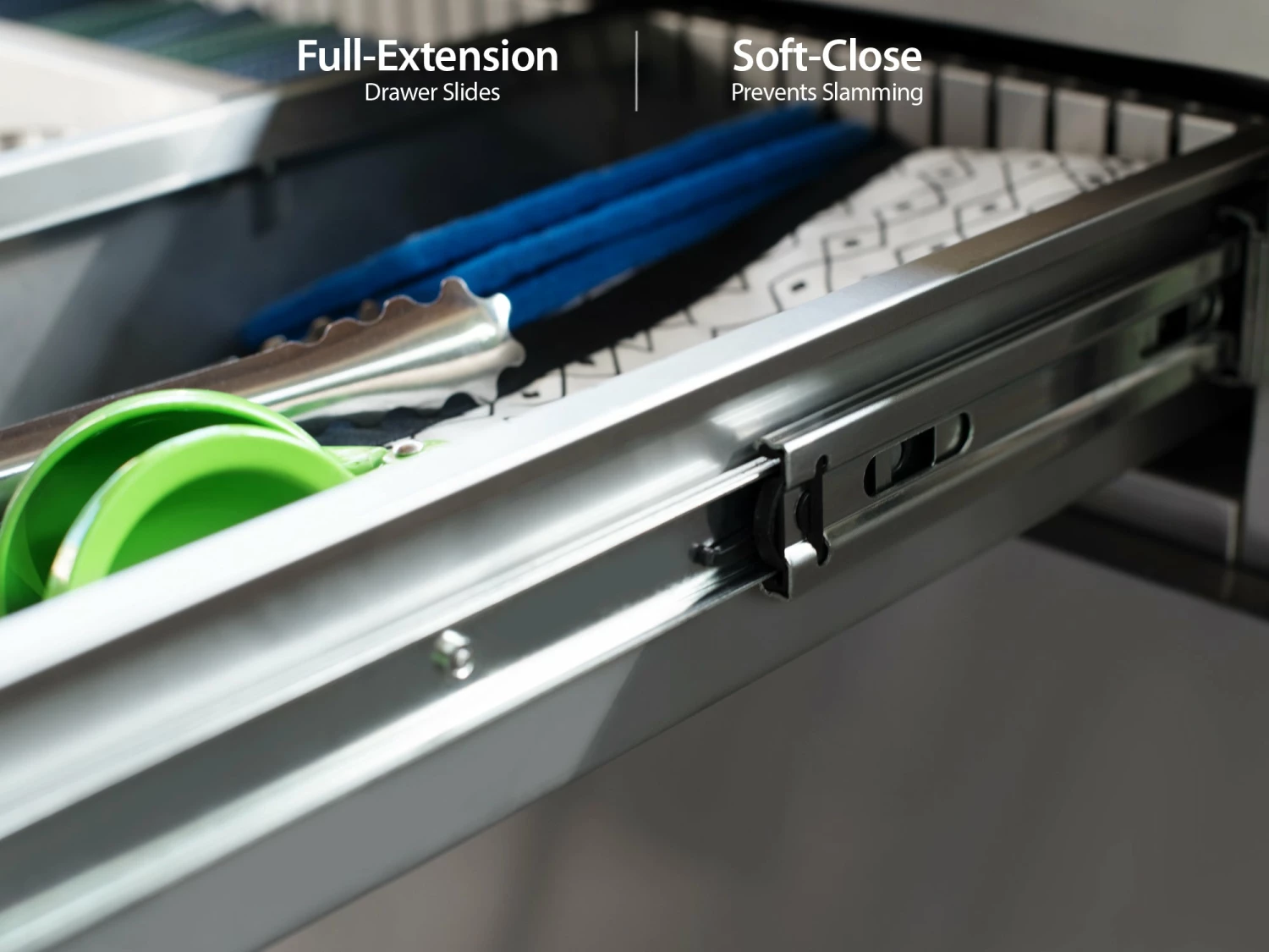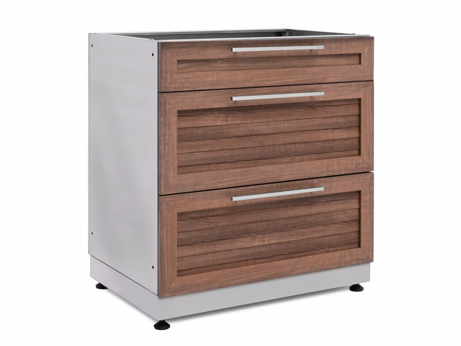 The Outdoor Kitchen 3-Drawer Cabinet gives you the convenient storage space you need for organizing hosting supplies, games and toys, and serving utensils. The fully assembled cabinet is built with 304 stainless steel for supporting heavy weights, and can easily handle stacks of dishes, bags of charcoal for grilling, and anything else you can throw at it. Two extra deep drawers, on soft-close drawer slides, smoothly open to full-extension for completely accessible space, and easy-grip handles provide quick drawer access even when your hands are full. The top drawer includes adjustable stainless steel dividers for separating cutlery and utensils, and easily organizing small items like skewers and BBQ lighters. For the convenience of a stocked kitchen, right in your backyard, the NewAge Products 3-Drawer Cabinet is your ultimate storage solution.